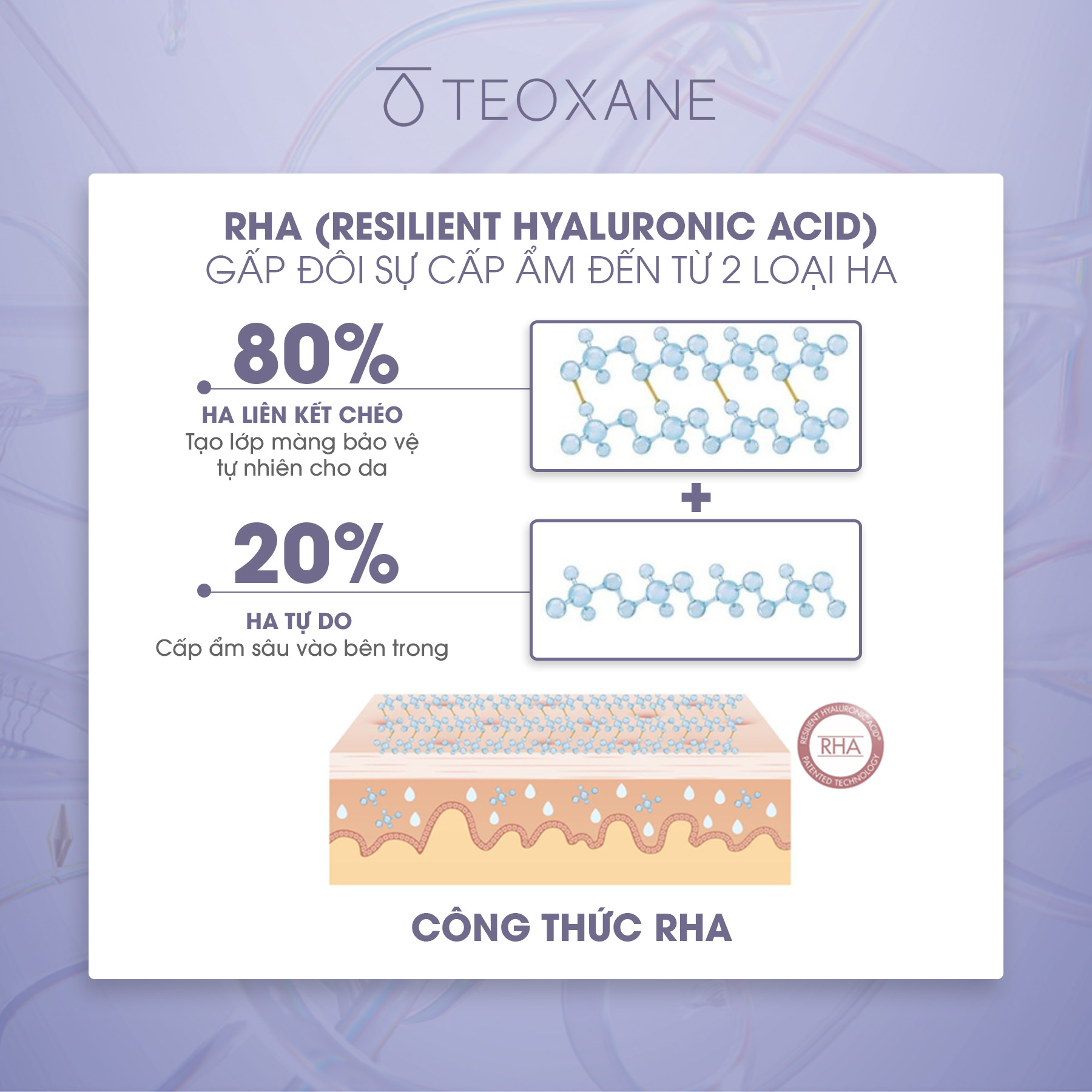 Mua tại TiktokSerum dưỡng ẩm và trẻ hóa da Teoxane RHA Serum 30 ml – Chuyển biến làn da thấy rõ được trong vòng 14 ngày Serum dưỡng ẩm và trẻ hóa da Teoxane RHA Serum 30 ml mang sự sáng tạo từ TEOXANE LABORATORIES nghiên cứu thẩm mỹ y khoa. Liều lượng cao RHA giúp tái kích hoạt các cơ chế tự nhiên của da nhằm tái tạo sâu: làm mới tế bàovà tái cấu trúc mô. Hoạt động kết hợp với sự bảo vệ được tăng cường bởi chất chống oxy hóa, tạo thành lớp kết cấu da thứ hai với sức mạnh giữ ẩm cao và hiệu quả làm săn da ngay lập tức. Thành phần củaSerum dưỡng ẩm và trẻ hóa da Teoxane RHA Serum 30 ml:
