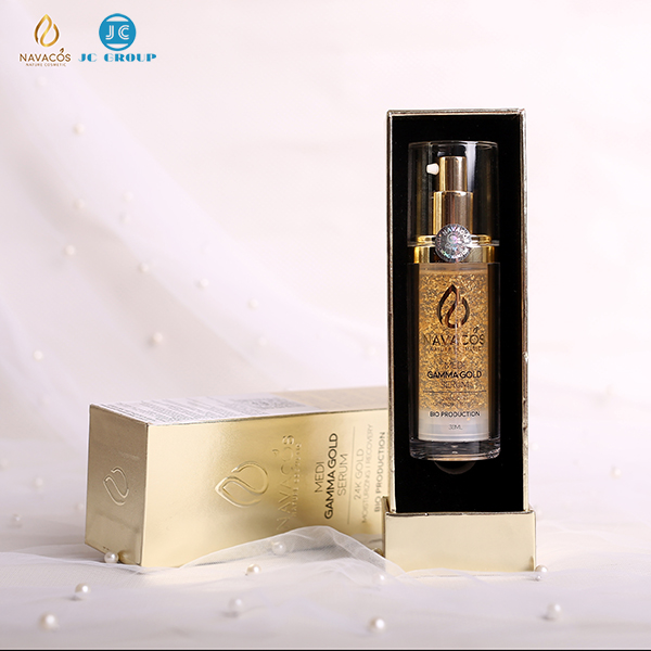 Tinh chất dưỡng da chiết xuất từ vàng Nano 24K nguyên chất có nguồn gốc từ Thụy Sỹ, độ tinh khiết cao, với công nghệ nano vượt trội các phân tử vàng kích thước siêu nhỏ 100nm, siêu mịn, dễ thẩm thấu, công nghệ cao cấp giúp tẩy độc tố tăng hệ miễn dịch, chống oxi hóa cao, vô hiệu hóa gốc tự do cho làn da, chống lão hóa cho da mạnh mẽ, làm dịu da hỗ trợ giải quyết mụn hiệu quả mang lại làn da trắng sáng, căng mịn, khỏe mạnh.