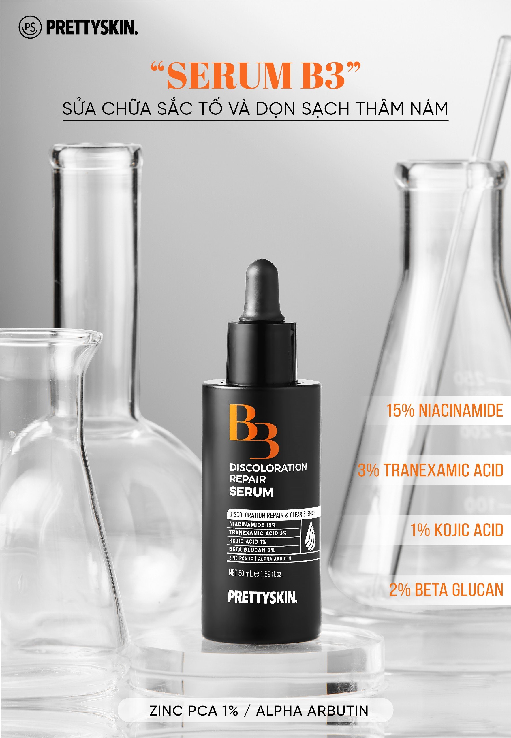 ✨Serum xóa mờ thâm nám, ngừa lão hóa, cấp ẩm và mềm da Pretty Skin B3 Discoloration Repair 50ml