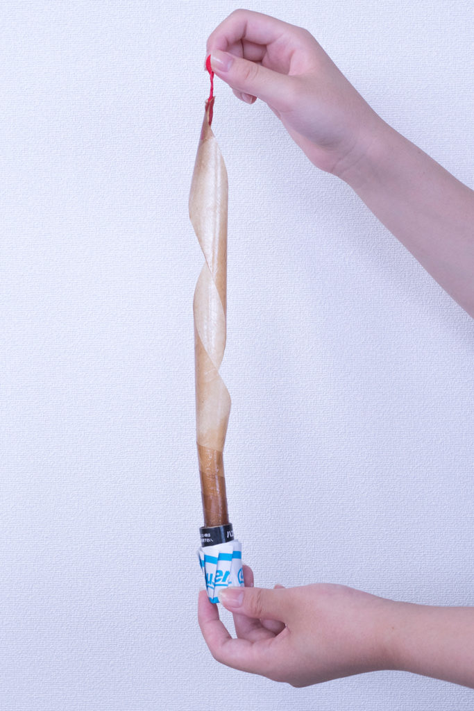 - Đặt dây vào ngón tay của bạn và từ từ kéo nó ra trong khi quay hình phễu trụ.