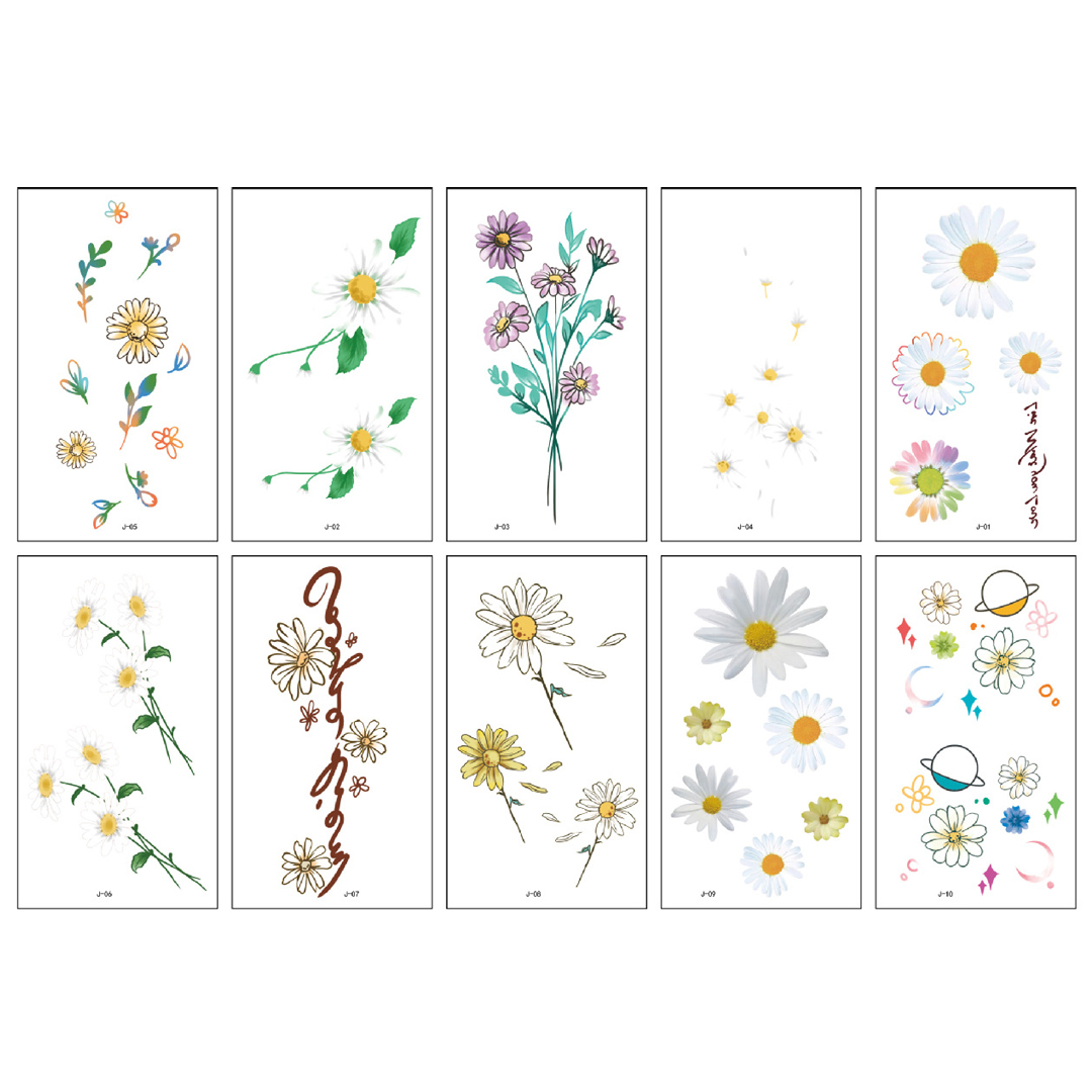 ✨Set 10 Tờ Hình Xăm Dán 8 Ngày Chống Nước Lâu Trôi Hoa Cúc Họa Mi, Mặt Trăng, Trái Đất Thời Trang Legaxi