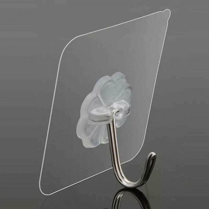 Móc treo đồ dán tường bằng nhựa trong, miếng dán bằng bạc móc treo bằng Inox siêu dính chịu lực tốt