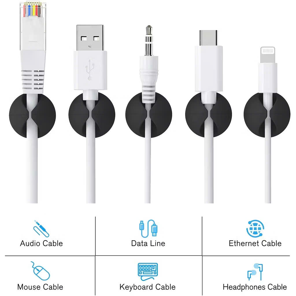 ✨SET 5 Nút Silicon Giữ Dây, Dán Cố Định Dây Cáp Sạc, Dây Điện, Tai Nghe Sắp Xếp Gọn Gàng Cho Bàn Làm Việc. Takyhome 5680