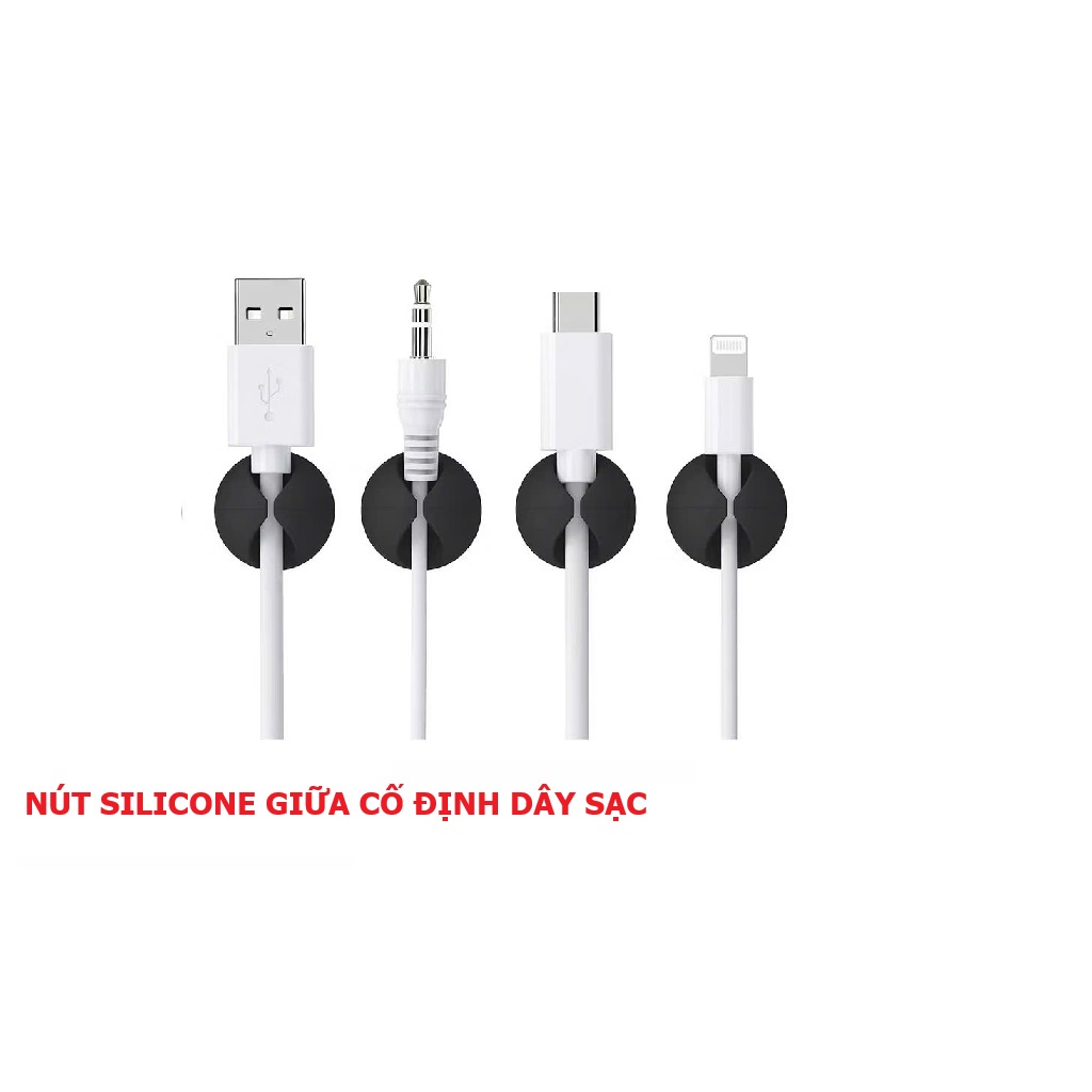 Set 5 Nút Giữ Dây, Nút Silicon Dán Cố Định Dây Cáp Sạc, Dây Điện, Tai Nghe Gọn Gàng Bàn Làm Việc.
