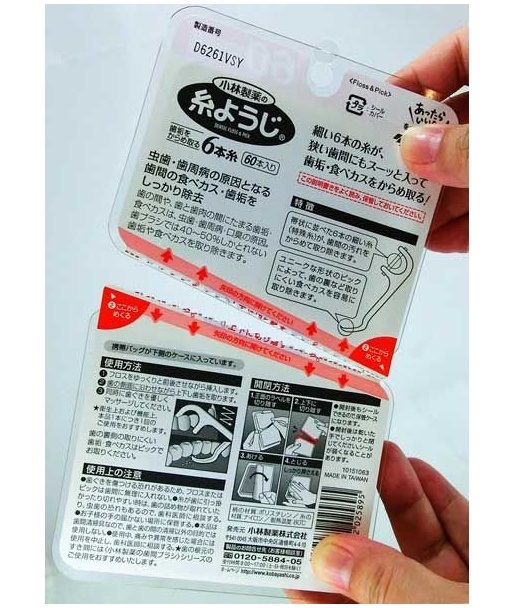 Set 60 chiếc tăm chỉ nha khoa Kobayashi, giúp lấy đi những thức ăn thừa lưu bám ở kẽ răng, chân nướu - nơi mà bàn chải đánh răng không thể chạm đến được -