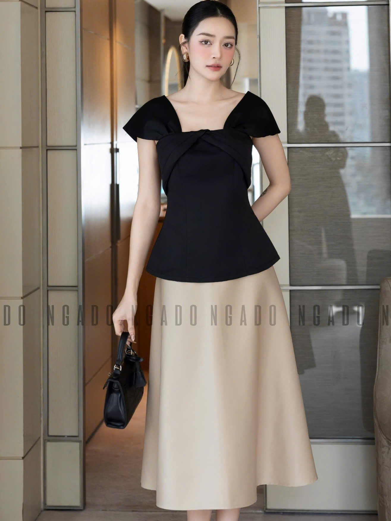 #56 #day56 Top Váy đen cổ điển phối áo trắng | Set đồ công sở sang trọng ngon 2025 #2025