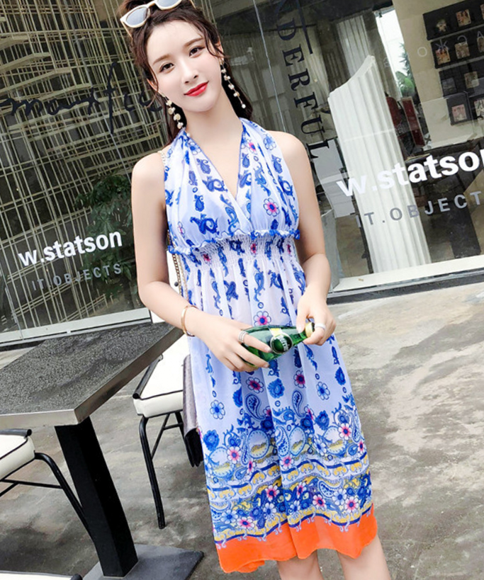 - Màu chủ đạo: Xanh. Thiết kế ba chi tiết: áo bơi, quần bơi và váy choàng xinh