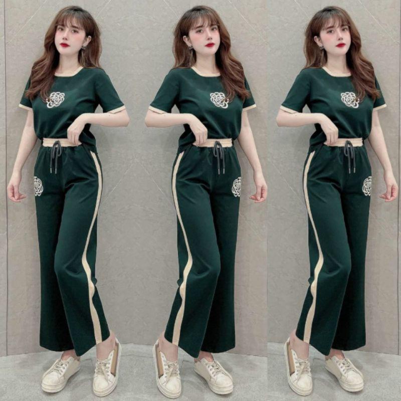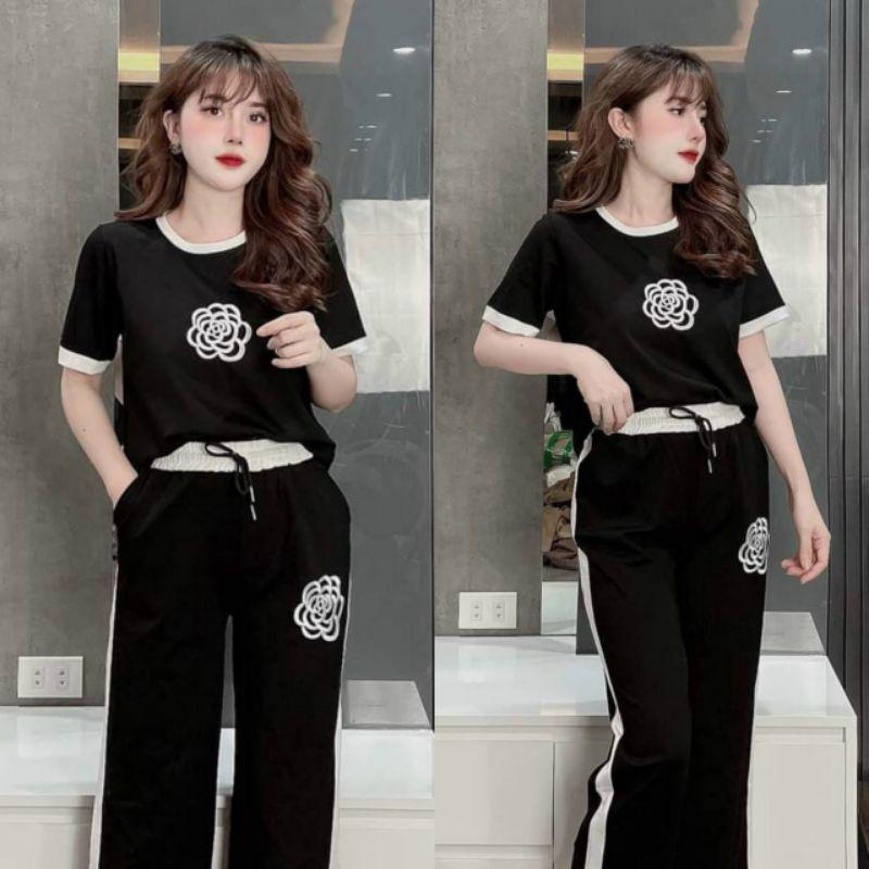 ✨sét bộ đồ nữ quần ống suông rộng phối áo thêu hoa mặc ơ nhà đi chơi duyên dáng mẫu mới siêu hot có bigsize đẹp xuất sắc