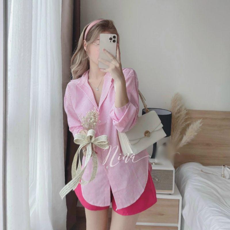 ✨Sét bộ quần đùi áo sơ mi kẻ sọc xinh xắn