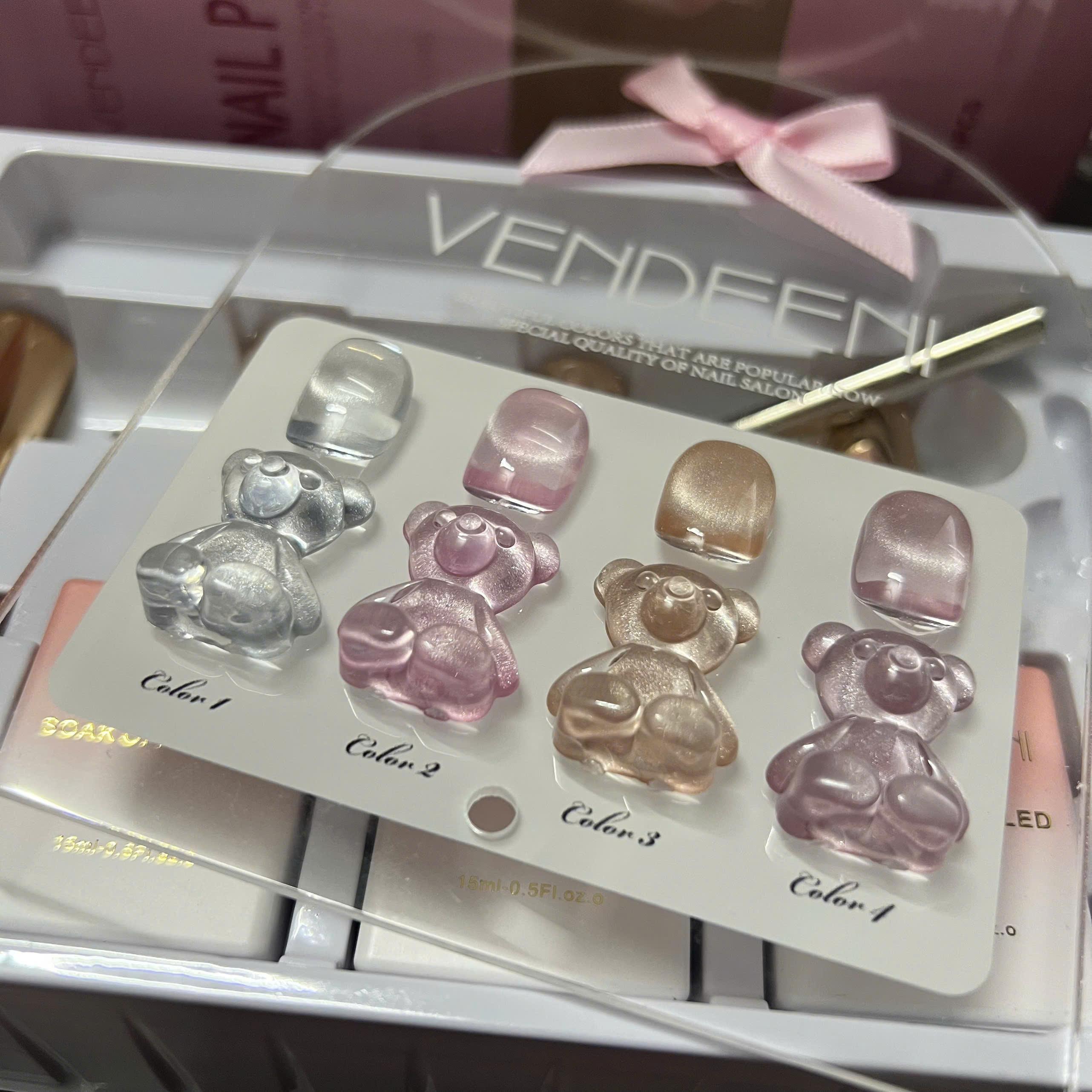✨Set Sơn Mắt Mèo Ánh Trăng VENDEENI 4 Màu Hồng (Bảng Gấu) Làm Nail Siêu Sáng, Gel Đặc Chuẩn Màu Bền Bóng Sêu Mịn Nữ Women
