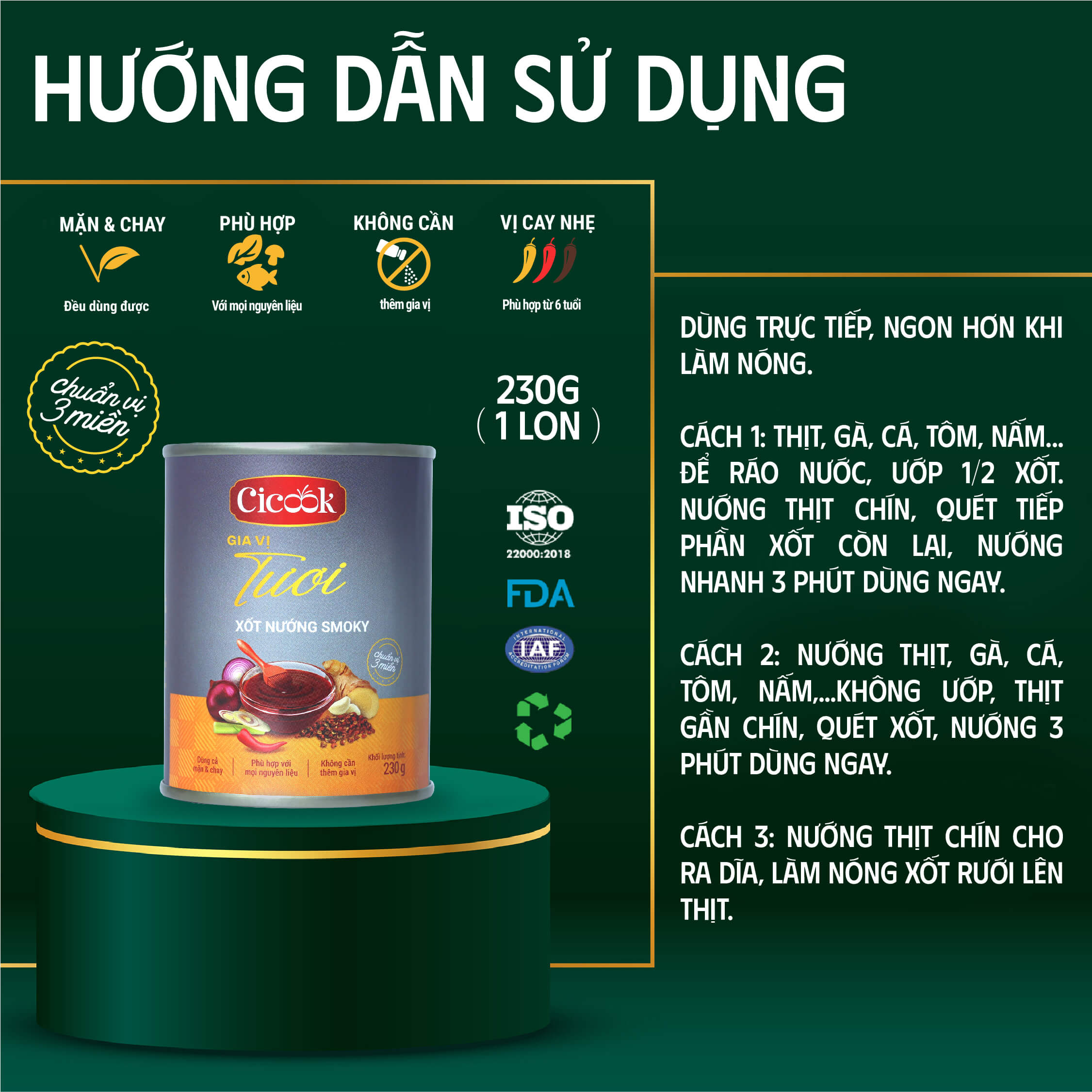 - Tính đa dụng: dùng cả mặn và chay, Lon Xốt Lẩu Chua Cay Cicook có thể sử dụng với mọi loại nguyên liệu, từ thịt, cá, hải sản đến các món ăn chay, đáp ứng nhu cầu ẩm thực đa dạng của người tiêu dùng