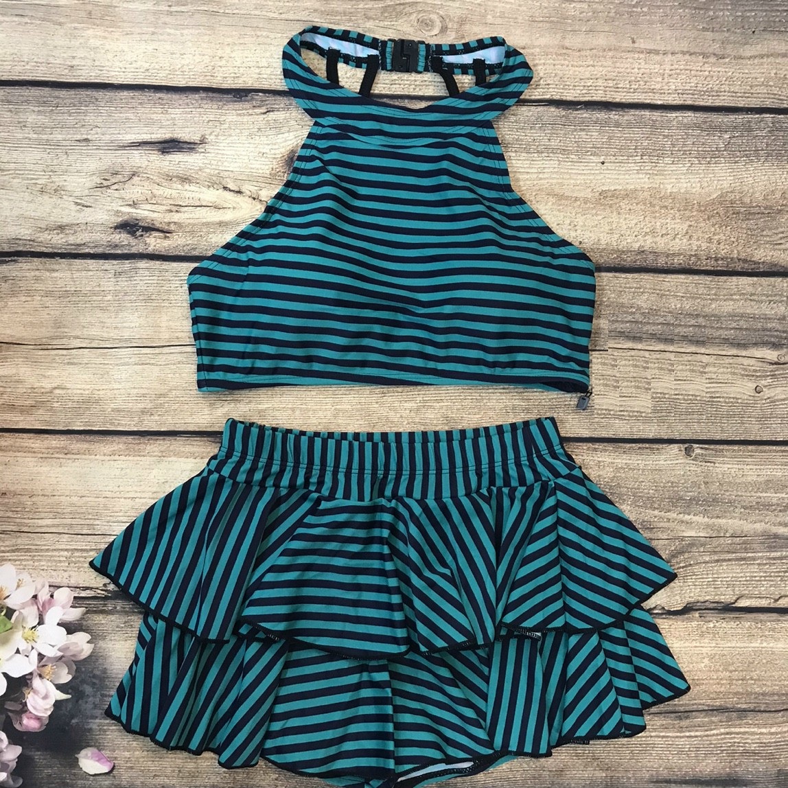- Mẫu bikini quyến rũ mà không cần quá sexy, áo croptop bèo mix cùng quần váy duyên dáng. - Chất Lycra cao cấp, là chất liệu thun bơi lạnh chuyên dùng, co dãn đa