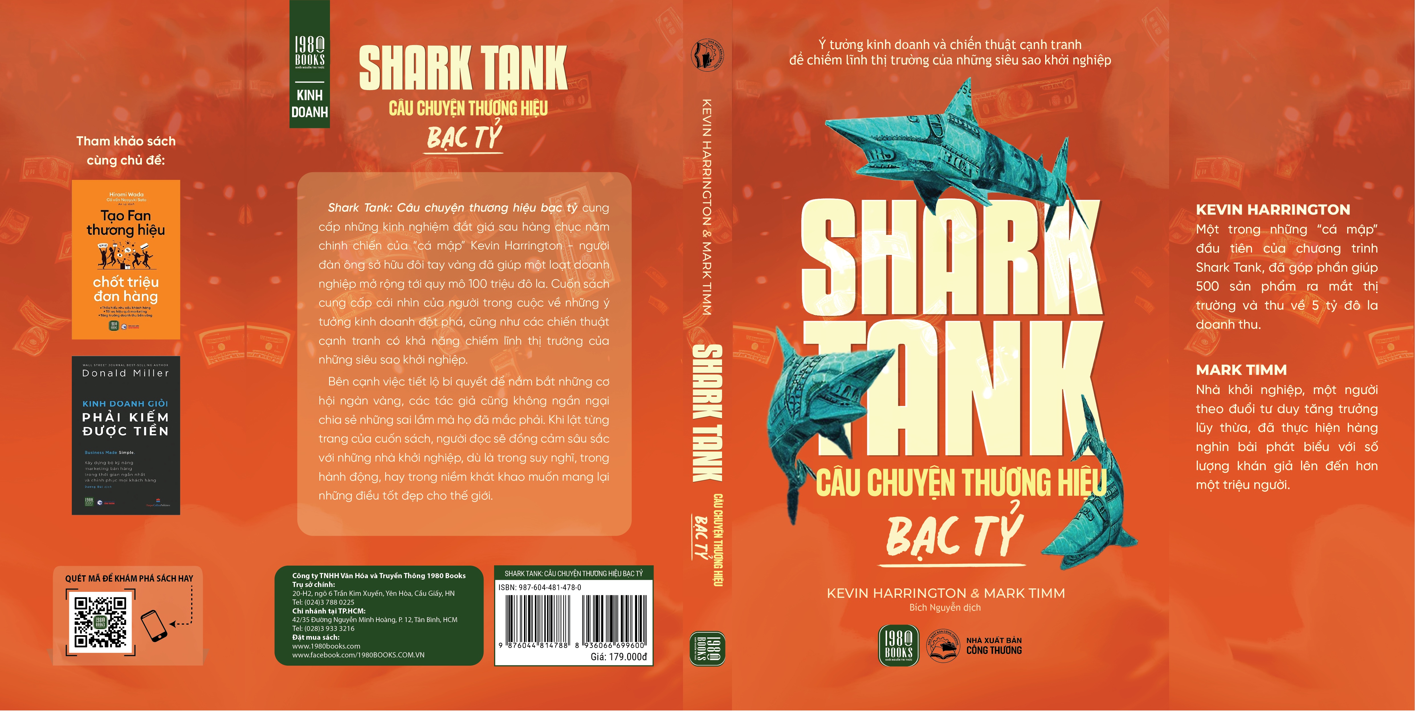 Shark Tank: Câu chuyện thương hiệu bạc tỷ, bộ đôi tác giả Kevin Harrington, một trong những “cá mập” đầu tiên của chương trình ăn khách Shark Tank, và doanh nhân Mark Timm sẽ dẫn dắt độc giả vào một hành trình đầy lôi cuốn, tìm hiểu những ý tưởng kinh doanh và chiến thuật cạnh tranh có khả năng chiếm lĩnh thị trường của những siêu sao khởi nghiệp hàng đầu thế giới.