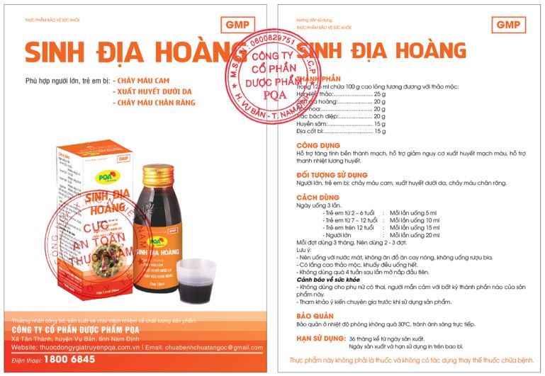 ✨Sinh Địa Hoàng PQA Giúp Thanh Nhiệt Lương Huyết, Hỗ Trợ Làm Tăng Tính Bền Thành Mạch Hộp 125ml