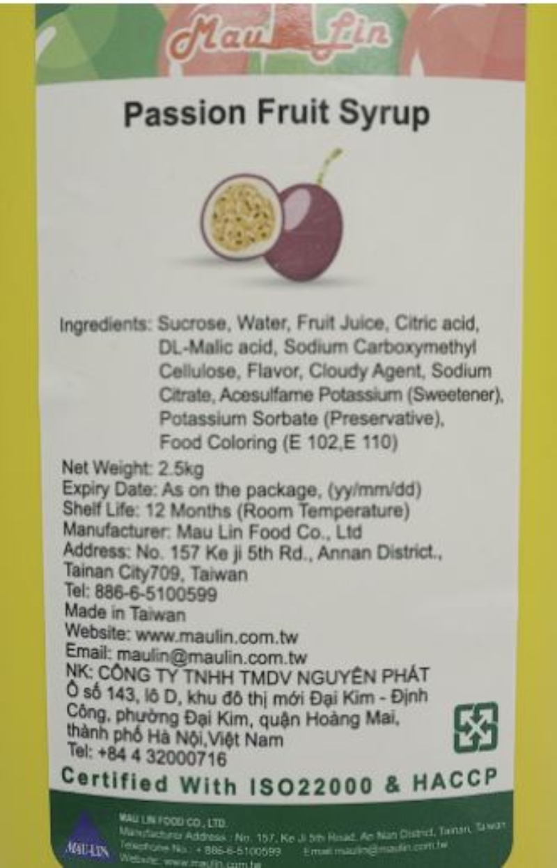 Siro Chanh Dây (Chanh Leo) MauLin (MauLin Passion Syrup) Can 2.5Kg