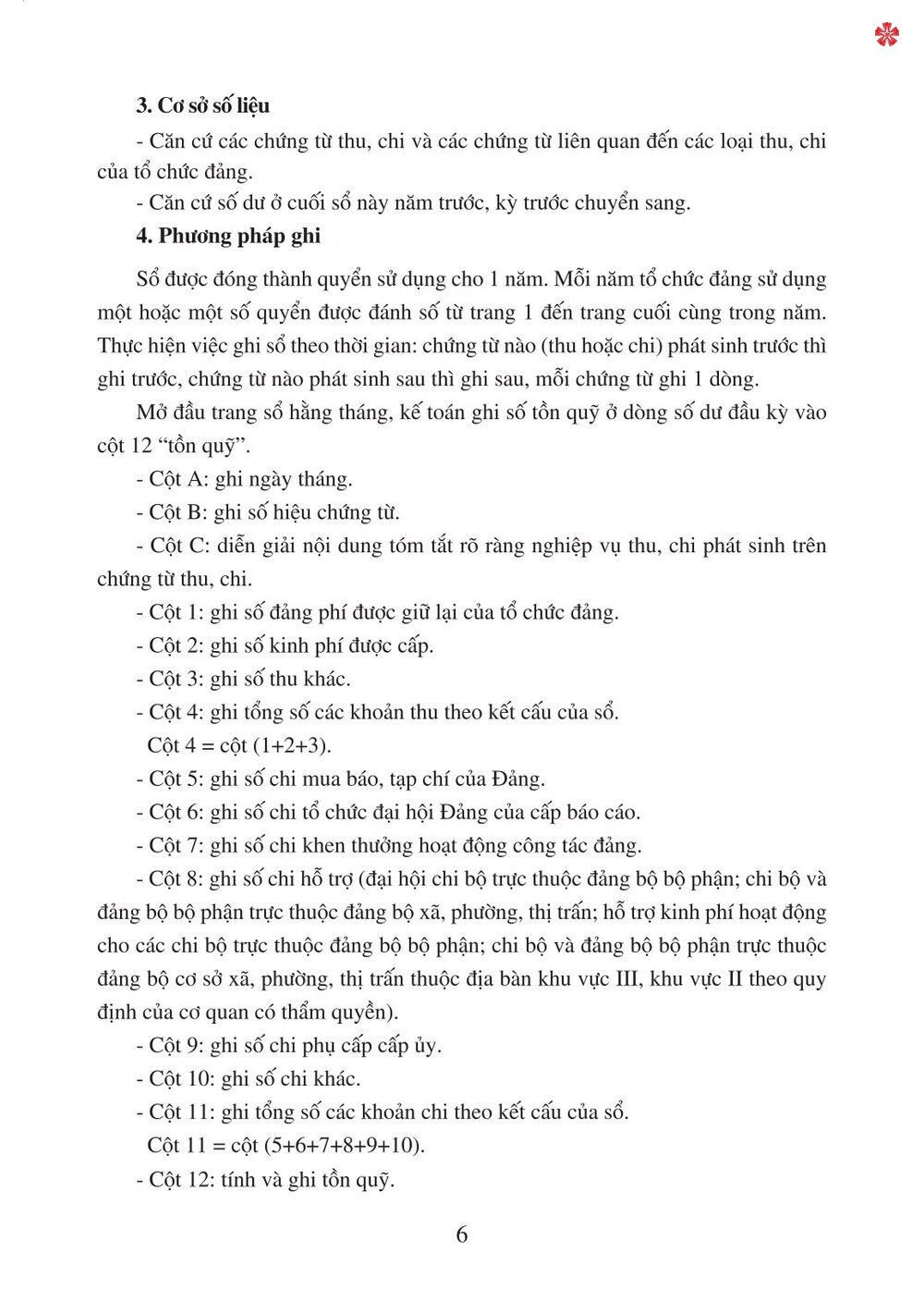 Sổ Chi Hoạt Động Công Tác Đảng Sổ thu, chi tài chính của tổ chức đảng các cấp dùng cho chi bộ cơ sở, đảng bộ cơ sở xã, phường, thị trấn; chi bộ cơ
