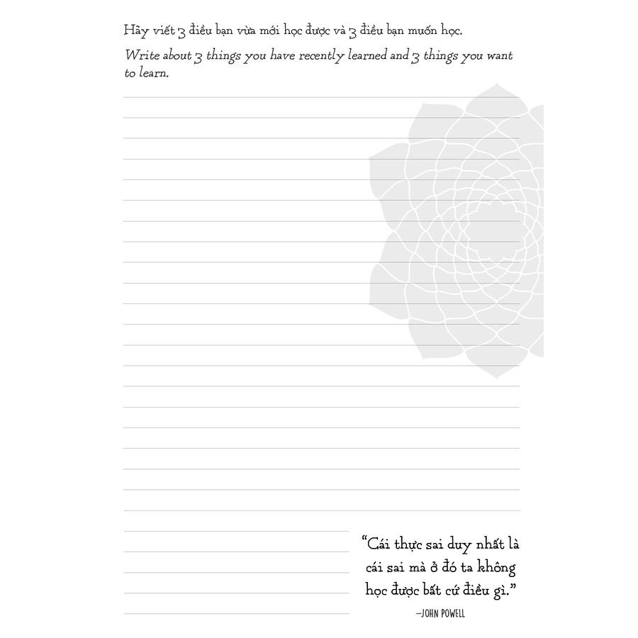 Giúp luyện viết hằng ngày Tiếng Việt: nâng cao kĩ năng viết dành cho học sinh, sinh viên, người làm content.. Tiếng Anh: tạo cơ hội rèn kĩ năng writing, làm quá trình học tiếng thú vị, giàu ý nghĩa.. Sau căng thẳng giờ làm, giờ học, dành chút thời gian để lắng lại, suy ngẫm thay vì cuốn vào giải trí để có được thái độ sống bình thản, có chiều sâu...