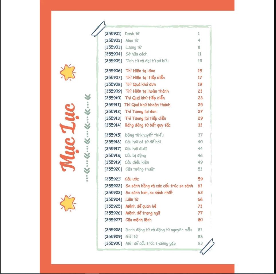 - Cuốn sổ tay được trình bày theo từng mục ngữ pháp, sử dụng các màu sắc và hình ảnh xinh xắn giúp các bạn phân biệt, tra cứu và ghi nhớ công thức dễ dàng hơn.