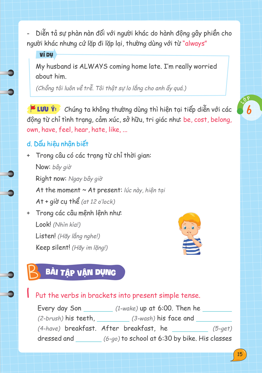 - Lời giải chi tiết, dễ hiểu Hệ thống lời giải chi tiết với đầy đủ dịch nghĩa, được trình bày rõ ràng, cụ thể, không chỉ giúp các em tự đánh giá năng lực mà còn cung cấp cho các em nhiều kiến thức hữu ích để nâng cao hiểu biết. Chúng tôi hi vọng rằng cuốn sách Sổ Tay Ngữ Pháp Và Bài Tập Tiếng Anh Lớp 6-7-8-9 sẽ luôn là người bạn đồng hành của các em học sinh và là sự tin tưởng của các thầy cô giáo và các quý vị phụ huynh!