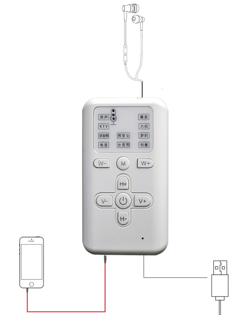 Bộ đổi giọng nói có 6 thay đổi âm thanh khác nhau, nam với nữ, nữ với nam, Đàn ông, bé gái, bé yêu, giọng nói ma thuật, giọng nói sâu sắc, Optimus PrimeGiao diện của bộ đổi giọng nói này là loại 3,5m...