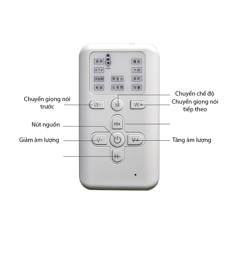 Bộ đổi giọng nói có 6 thay đổi âm thanh khác nhau, nam với nữ, nữ với nam, Đàn ông, bé gái, bé yêu, giọng nói ma thuật, giọng nói sâu sắc, Optimus Prime Giao
