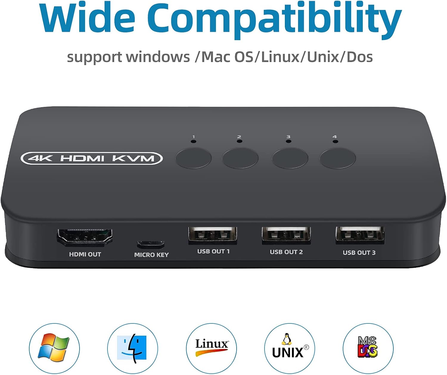 Bộ chuyển đổi HDMI KVM Switch HDMI 4 Port Box, Hỗ trợ UHD 4K@30Hz & 3D & 1080P