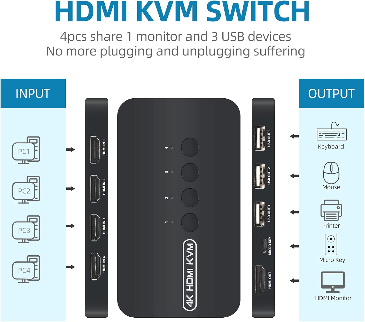 ✨SOAIY Bộ Chuyển Đổi HDMI KVM Switch 4 Port FJ-HK401 - Hàng Nhập Khẩu