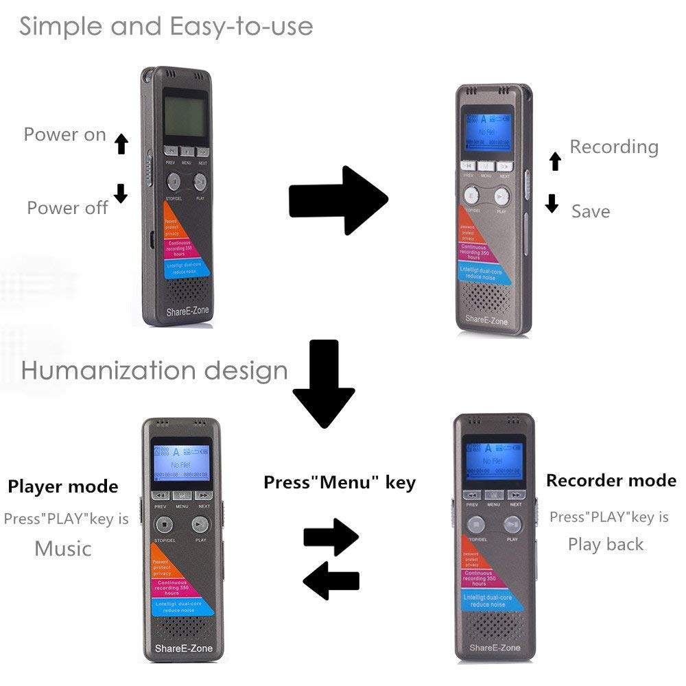 Mua tại TiktokSHAREE-ZONE devotes to offer fashional, unique, useful, high-quality smart easy life electronic accessories All we do is to make technology simpler and more enjoyable for customer. We provide each customer with the manufacturer warranty and superb customer service. Any question or advice, please feel free to contact Shareezone support. Lossless Sound Quality, Simple and Easy-to-use Recording via the built-in microphone or line-in with WAV or MP3 format, WAV format REC Bit Rate up to 512kbps provides you lossless sound quality of recordings. You can monitor recording by simply plug the earphone to listening it while the recording is in progress Supper Long Standby and 48hrs Record Time Built-in 1600mAh Li-ion rechargeable battery provides 48hrs record time . And can charge via a computer USB port or a USB 5V/1A(Max) AC adapter In addition, with 8GB capacity, you don't have to worry about its inadequate memory. A recording pen has nowadays been widely used in meetings, conversations, phone calls, surveillance and so on. You might as well buy one for your own use!