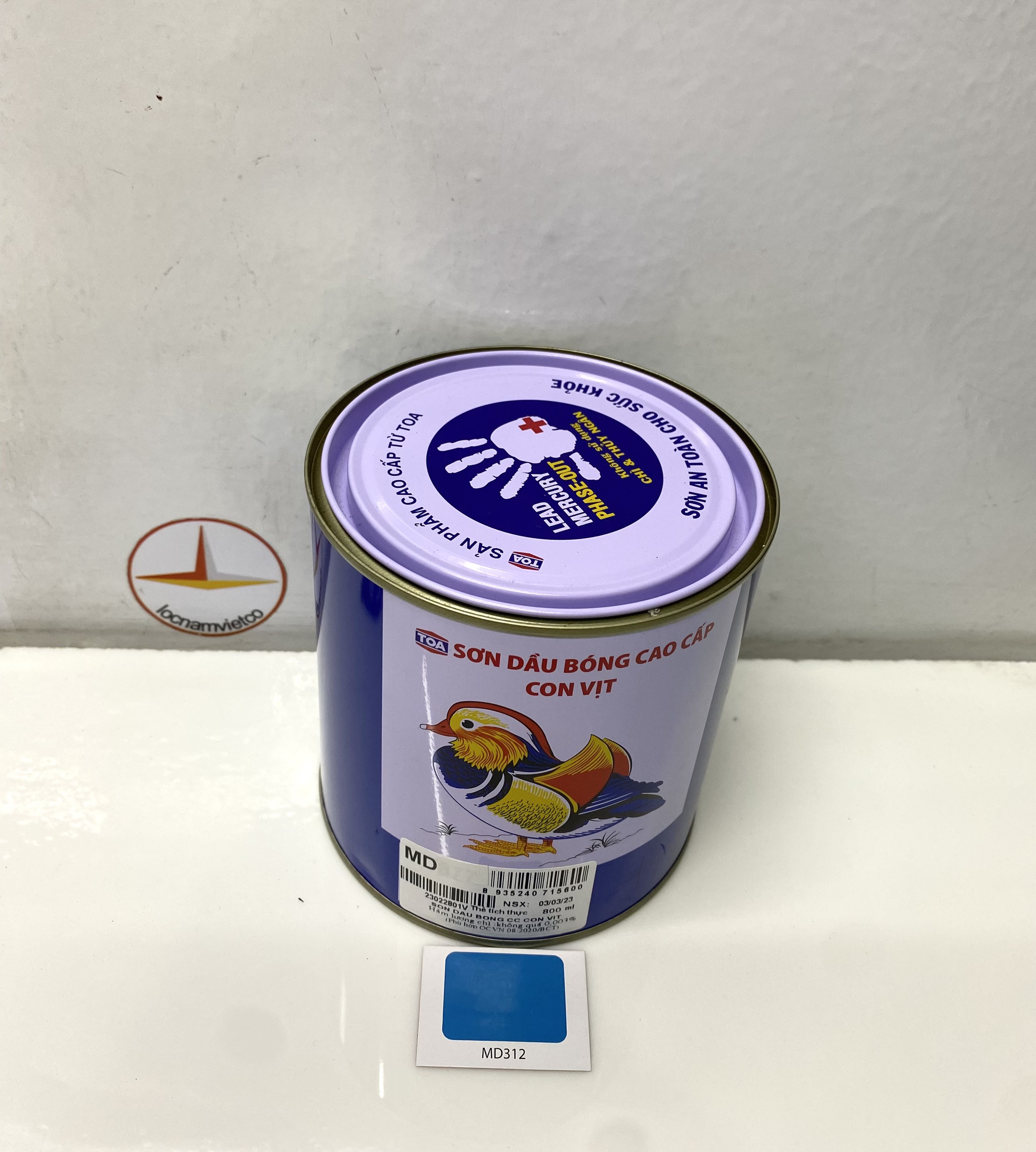 Mua tại TiktokSơn dầu cao cấp Toa hiệu Con Vịt màu xanh dương MD312 _800ML Sơn dầu bóng cao cấp Con Vịt (Mandarin Duck) là loại sơn Alkyd chất lượng cao, không sử dụng Chì & Chất gây hại, là loại sơn an toàn cho sức khoẻ với các tính năng: Khô nhanh, màng sơn bóng đẹp, độ phủ cao, chống nấm mốc, màu sắc tươi đẹp.
