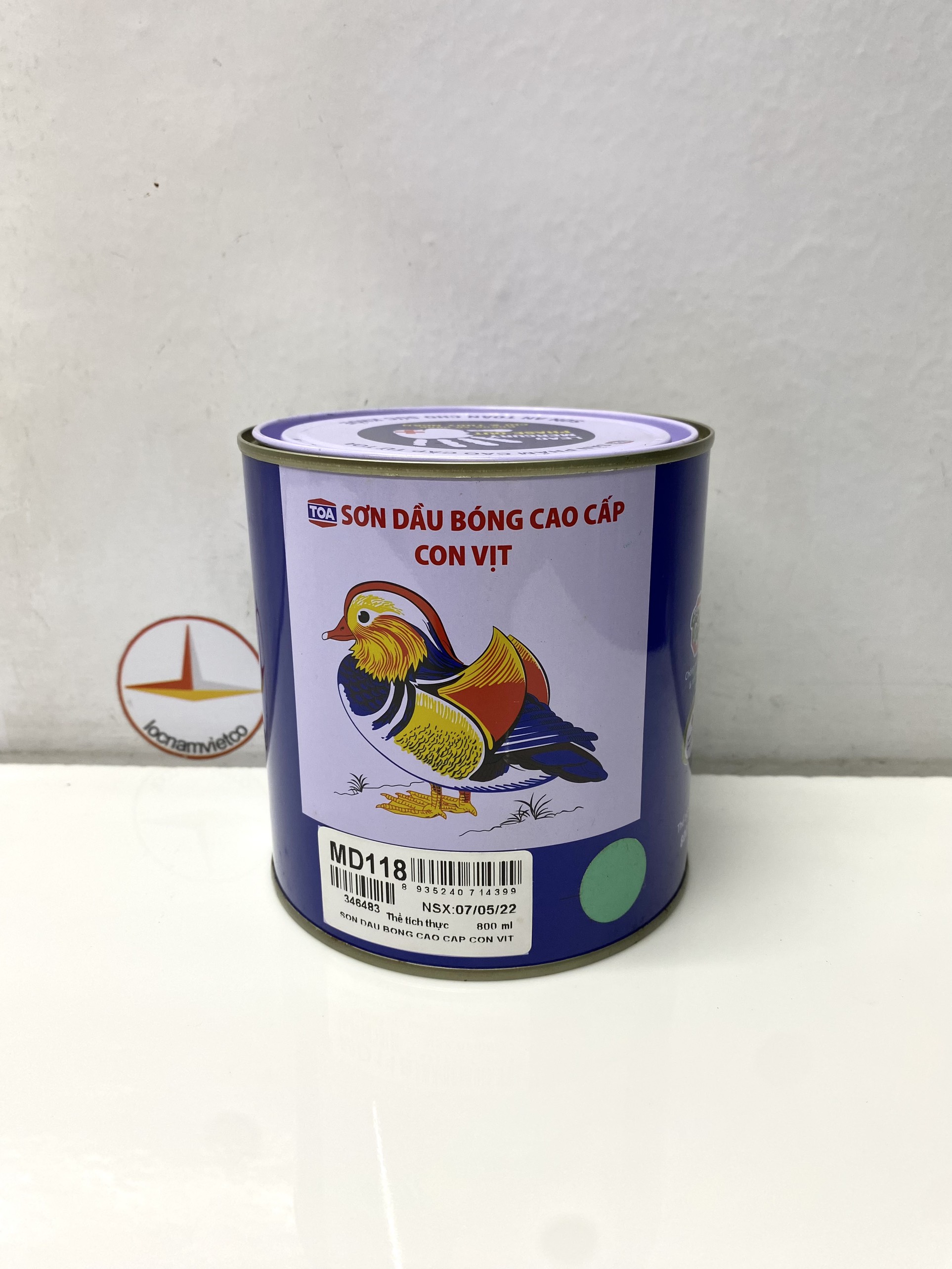 Mua tại TiktokSơn dầu cao cấp Toa hiệu Con Vịt màu xanh ngọc MD118 _800ML Sơn dầu bóng cao cấp Con Vịt (Mandarin Duck) là loại sơn Alkyd chất lượng cao, không sử dụng Chì & chất gây hại, là loại sơn an toàn cho sức khoẻ với các tính năng: Khô nhanh, màng sơn bóng đẹp, độ phủ cao, chống nấm mốc, màu sắc tươi đẹp.