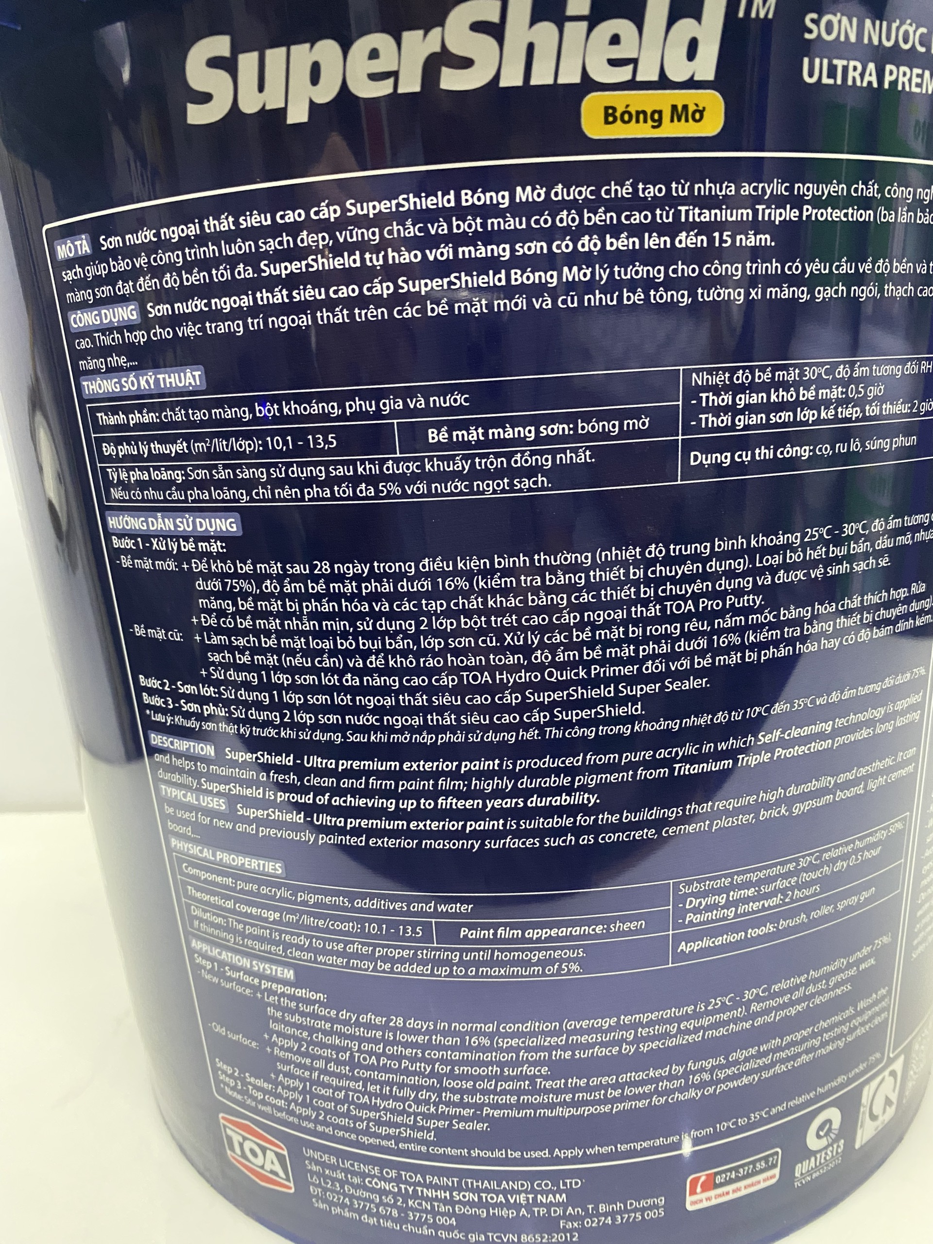 ·Hàm lượng chất hữu cơ bay hơi (VOCs): ≤ 50 g/L bề mặt bóng mờ, ≤ 70 g/L bề mặt siêu bóng