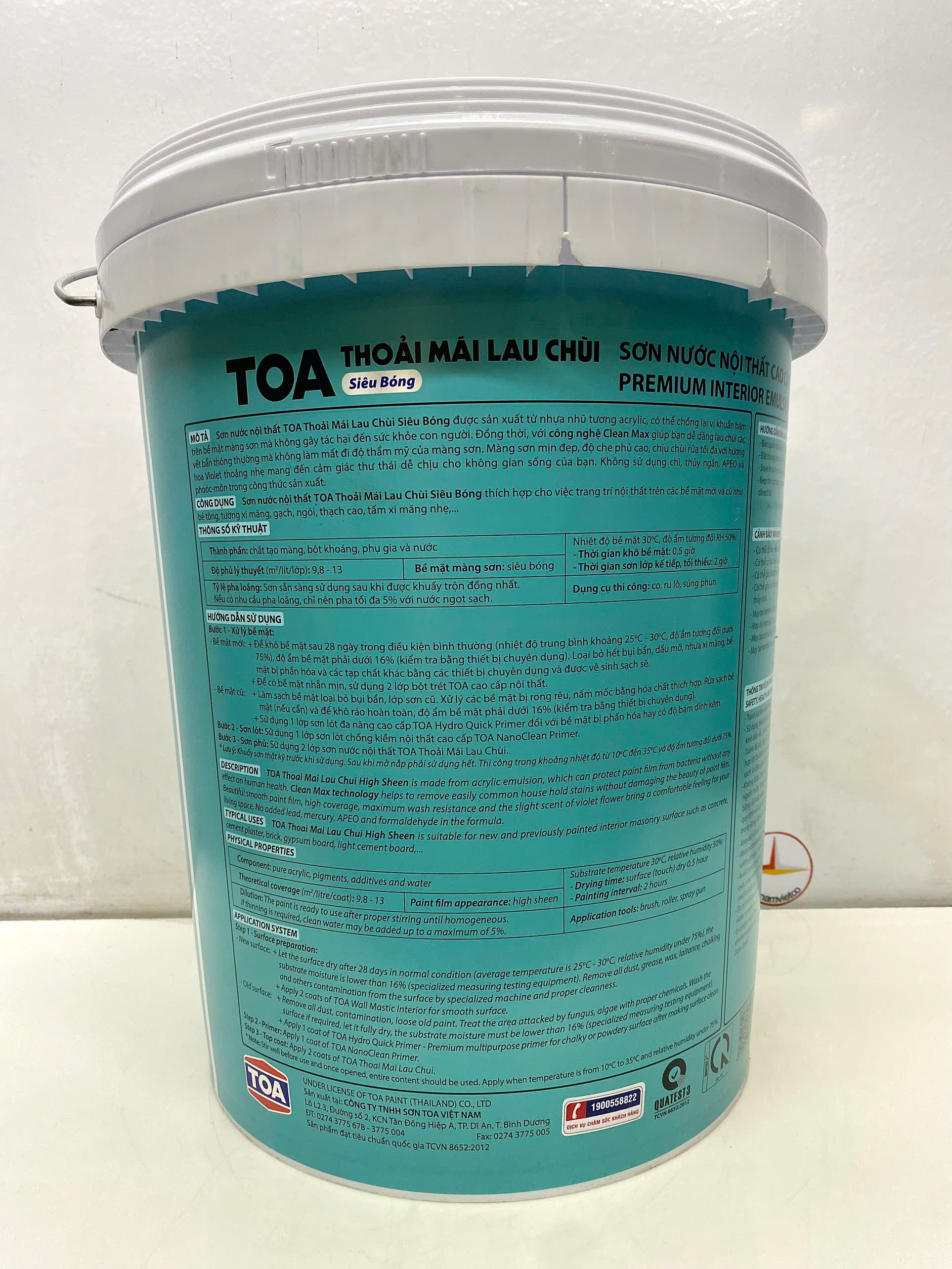 Sơn nước Toa 4 Season Top Silk dễ lau chùi nội thất NHIỀU MÀU _18L Sơn Nước nội thất Toa 4 Season top silk dễ lau chùi được chế tạo từ nhựa nhũ tương, với