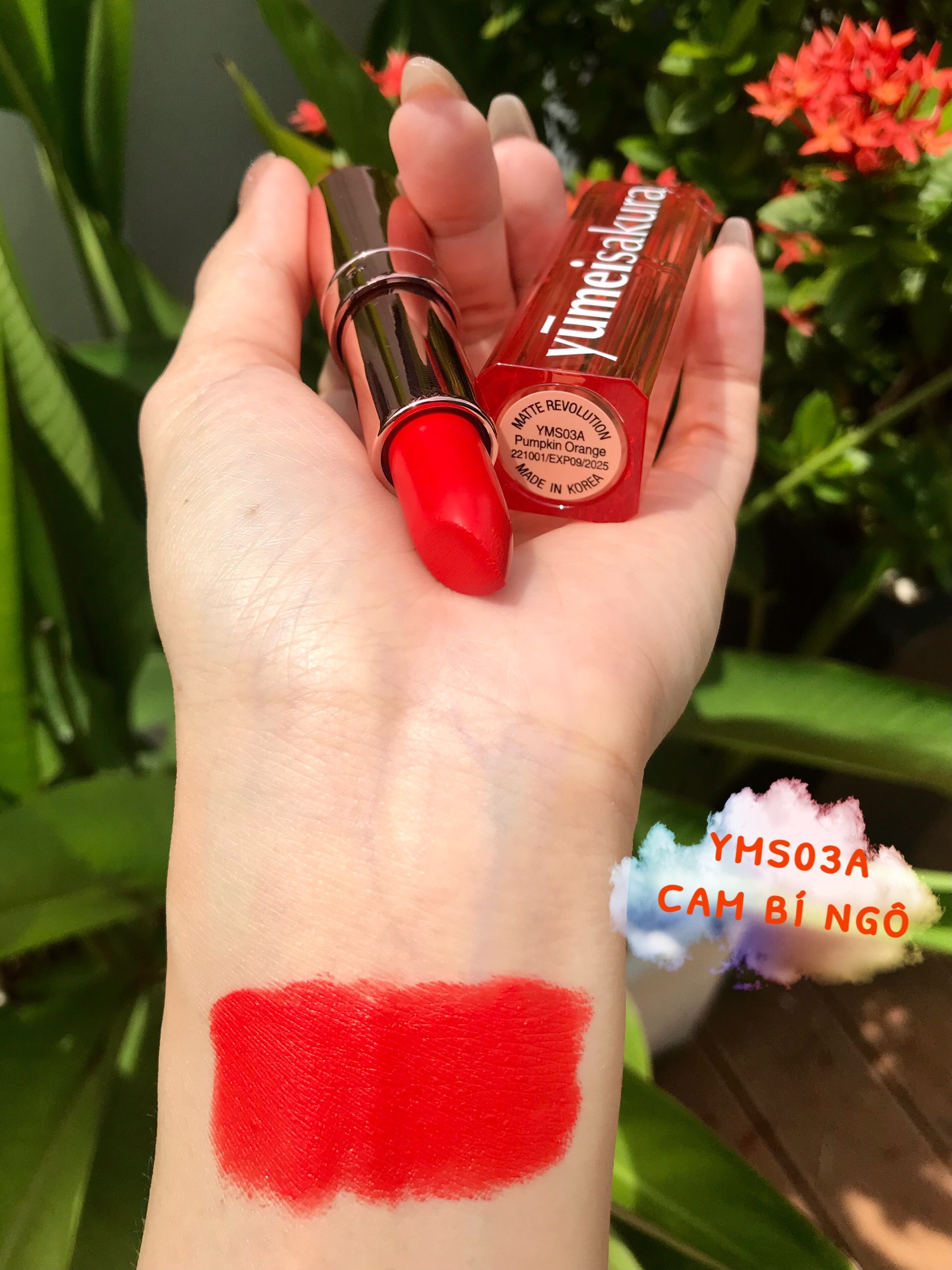 - Thiết kế mới độc đáo, sang trọng và tiện dụng BẢNG MÀU VỚI 08 MÀU SON THỜI THƯỢNG: Tháng 05/2023, Yumeisakura chính thức chào đón thêm 3 màu son mới “quen mà lạ, lạ mà quen” vào bảng màu đa sắc son ChottoMATTE. YMS11 - Kiss Me Maroon - Đỏ gạch (Mới): Nụ hôn nồng nàn khiến bao trái tim thổn thức YMS18 - Milky Orange - Cam sữa (Mới): Sự kiêu sa đầy quyến rũ của phụ nữ hiện đại YMS19 - Sweetie Coral Pink - Hồng san hô (Mới): Tô điểm nét duyên dáng đầy khí chất YMS03A - Pumpkin Orange - Cam Bí Ngô: Bùng nổ năng lượng sôi nổi tích cực YMS07 - Candy Apple - Đỏ Cam: Thỏa đam mê nổi bật YMS15 - Love Me Tony Pink - Hồng Đất: Dịu dàng, nữ tính và ngọt ngào YMS16 - Bronze Orange - Cam Nâu Đất: Tôn vinh nét phóng khoáng, cá tính độc bản YMS17 - Burgundy Red - Đỏ Rượu Sẫm: Quyến rũ, sang trọng và quyền lực Sở hữu những màu sắc trendy, thời thượng và lôi cuốn, 8 màu son của Yumeisakura hứa hẹn sẽ khiến hàng triệu cô gái mê mệt trước sự quyến xinh đẹp, quyến rũ này! THIẾT KẾ MỚI ĐỘC ĐÁO VÀ ẤN TƯỢNG Thiết kế lấy cảm hứng từ những viên tinh thể trong suốt, sắc hồng rose gold thời thượng tạo nên vẻ ngoài sang trọng độc đáo nhưng cũng không kém phần tiện dụng khi có thêm chi tiết khóa treo son giúp dễ dàng mang theo bên người. CÁCH BẢO QUẢN