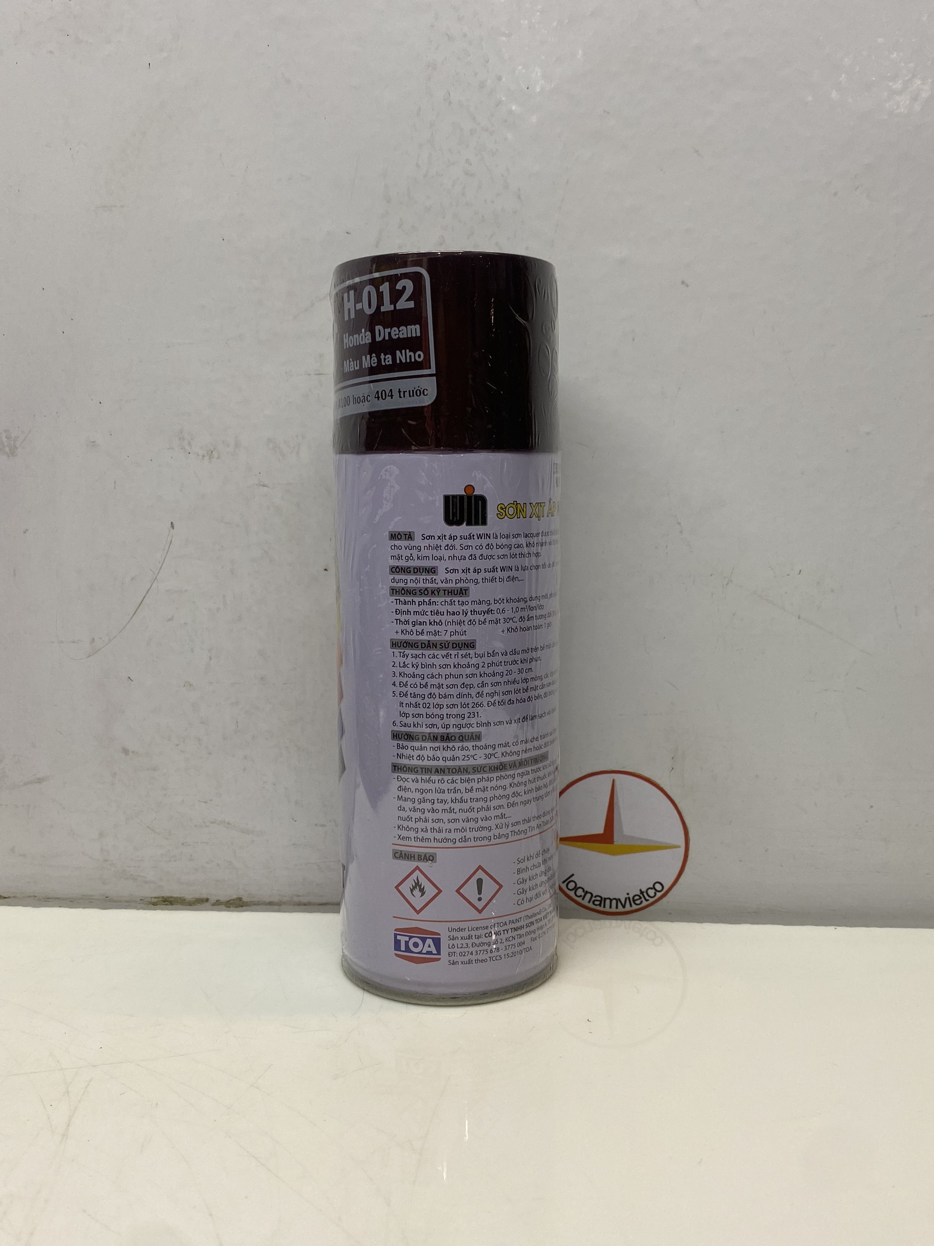 Mua tại TiktokSƠN XỊT XE MÁY WIN MÀU H012 400ML Sơn xịt WIN là loại sơn Lacquer với công thức đặc biệt thích hợp sử dụng cho vùng nhiệt đới. Sơn có độ bóng cao, khô nhanh và độ kết dính tuyệt hảo. Công dụng: Sơn xịt WIN là sự lựa chọn tối ưu để trang trí và bảo vệ cho các vật dụng nội thất, văn phòng, thiết bị điệ Thành phần: Chất tạo màng ; Bột màu ; Dung môi , Phụ Độ phủ lý thuyết:0.6 - 1 m²/lon/lớp (tùy thuộc vào màu) Đóng gói: 400ml/chai; 12 chai/thùng Thời gian khô :