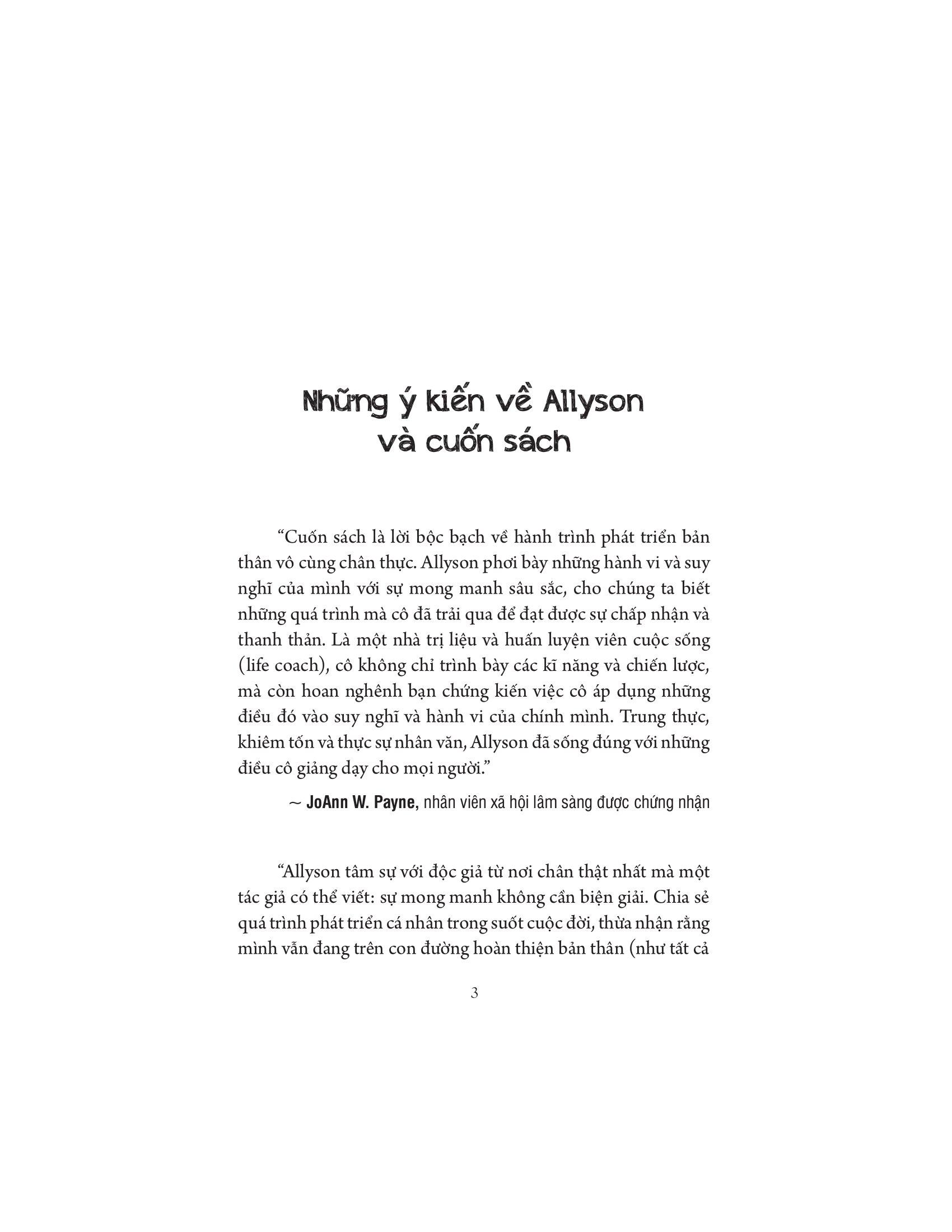 Cuốn sách là món quà tri thức, sự thấu hiểu và các công cụ để giúp bạn chịu trách nhiệm hoàn toàn cho cuộc sống của m.ình. Cuốn sách là một hành trình nội tâm của công cuộc khám phá bản thân, sự trung thực và trách nhiệm cá nhân, để soi sáng những góc sâu kín nhất của cảm xúc, suy nghĩ, niềm tin, nhu cầu, thói quen, và khuôn mẫu hành động của bạn.