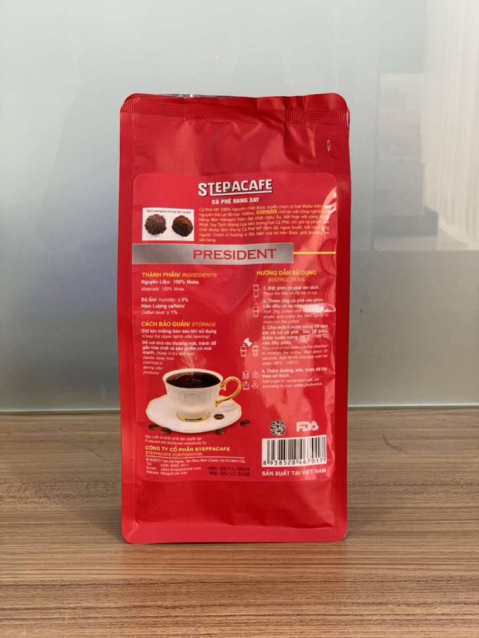 Cà Phê Rang Xay VIP 500g - STEPPACAFE Cà Phê VIP 100% nguyên chất được tuyển chọn từ hạt Moka trên cao nguyên Đà Lạt cao 1600m. STEPPACAFE chế tác với công nghệ rang bằng đèn