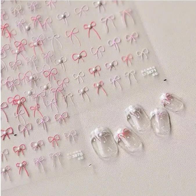 ✨Sticker 5D Lụa Nổi Hình Dây Nơ Mảnh Mix Màu Trắng Hồng dán nail Cao Cấp TL004 Đính Đá Trang Trí Móng Siêu Dễ Thương Phong Cách Hàn Quốc Nữ Women