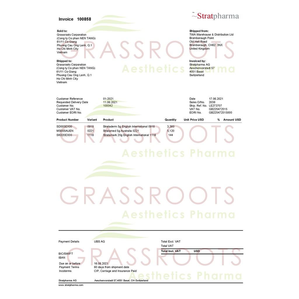 - Sau khi gel Strataderm khô, có thể phủ lên trên bằng kem chống nắng, mỹ phẩm, băng tạo áp lực hoặc bó bột