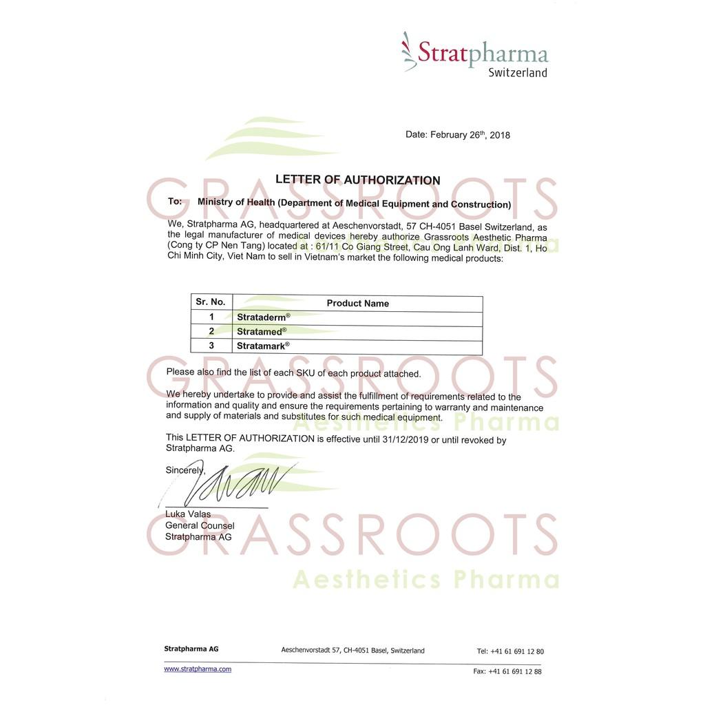 Stratamed là Gel silicone đầu tiên & duy nhất trên thị trường được cấp phép sử dụng trên vết thương hở. Đối với trường hợp vết mổ vào những ngày đầu, việc sử dụng Stratamed sẽ giúp vết thương tránh được tình trạng nhiễm trùng do vi khuẩn từ bên ngoài thâm nhập.Sản phẩm tạo ra một môi trường bán kín cấp ẩm cho mô của vết thương, cho phép các tế bào sừng di chuyển qua lớp nền của vết thương nhanh hơn, giúp rút ngắn thời gian lành vết thương lên đến 50%, giảm phản ứng viêm, cảm giác ngứa rát và ngăn ngừa sẹo hình thành. Tuýp 5g có thể sử dụng từ 1-3 tháng tùy vào kích thước vết sẹo.