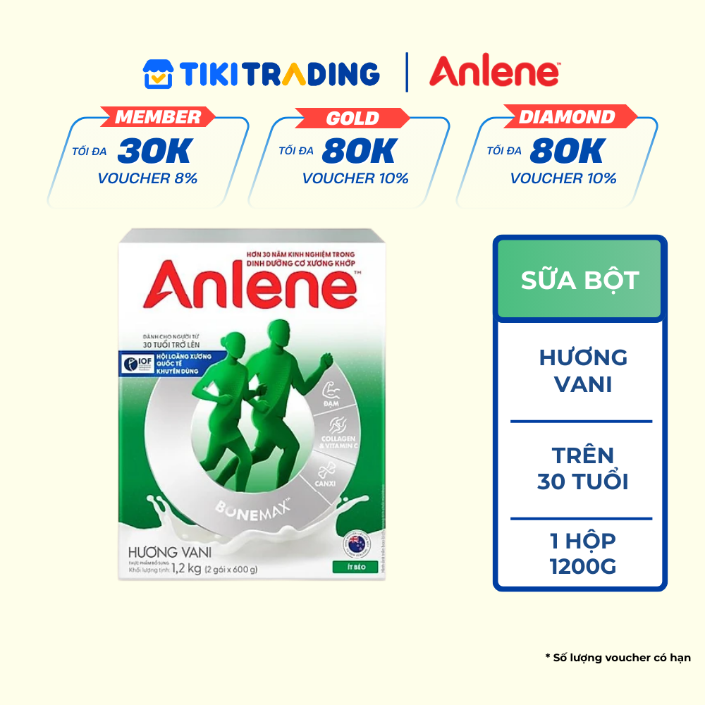 SỮA ANLENE HƯƠNG VANISản phẩm sữa cho người lớn tuổi (từ 30 tuổi trở lên) với HỆ DƯỠNG CHẤT BONEMAX chứa hàm lượng cao: • Đạm • Canxi • Collagen • Các loại Vitamin (B, C, D) • Khoáng chất (Magiê, Kẽm)