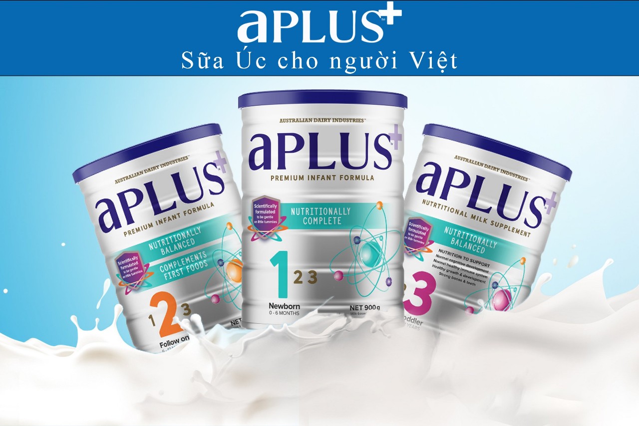 Sữa bột cao cấp aPlus là một thương hiệu sữa nổi tiếng được bà mẹ trong nước Úc tin dùng. Lần đầu tiên thương hiệu sữa aPlus đến từ úc được nhập khẩu và phân phối độc quyền, trẻ em Việt sẽ được thụ hưởng nguồn dinh dưỡng chất lượng hàng đầu, vượt trội và tối ưu cho từng bước phát triển của trẻ. Chăm sóc toàn diện từ bữa ăn đến giấc ngủ của bé Sữa Aplus cung cấp cho giai đoạn vàng của trẻ vượt trội hàm lượng các loại vitamin, 20 loại axit amin, omega 3 và 6, các loại khoáng chất, canxi, sắt, taurin, … giúp hỗ trợ cho sự tăng trưởng, thông minh và phát triển tối ưu của trẻ. Ngoài ra Aplus còn bổ sung Prebiotic GOS và FOS hỗ trợ hệ vi sinh giúp trẻ hấp thu, tiêu hóa tốt và khỏe mạnh toàn diện.