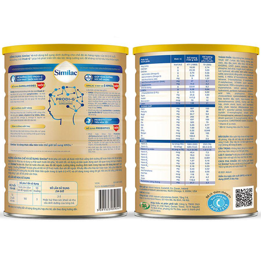 - Đậy nắp kín và bảo quản nơi khô mát (không để trong tủ lạnh). Cách pha chuẩn Mỗi muỗng gạt ngang bột Similac 4 pha với 60 ml (2 fl oz) nước hoặc 152,0 g bột pha với nước thành 1 lít. Lưu ý