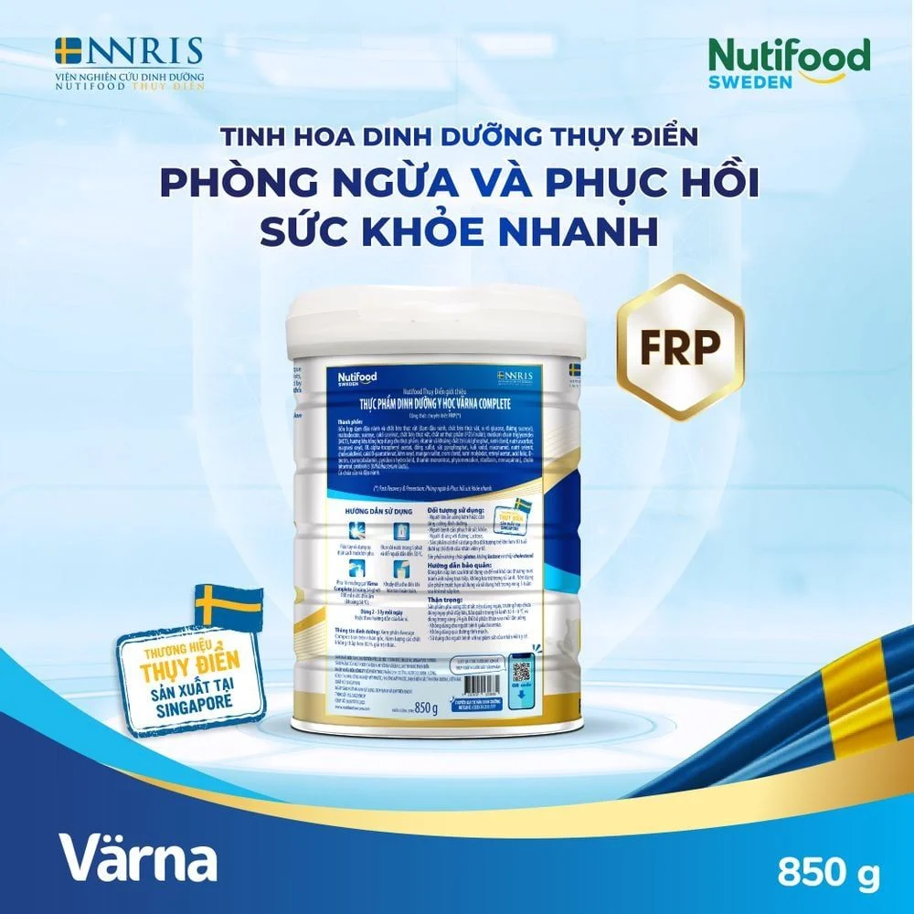 Mua tại TiktokSản phẩm này không phải là thuốc và không có tác dụng thay thế thuốc chữa bệnh ĐẶC ĐIỂM NỔI BẬT CỦA SẢN PHẨM Ứng dụng tinh hoa khoa học dinh dưỡng Châu Âu cùng hơn 20 năm am hiểu sâu sắc thể trạng đặc thù của người lớn, người ăn uống kém và người bệnh tại Việt Nam từ Chuyên gia dinh dưỡng Nutifood, thực phẩm dinh dưỡng y học Värna Complete với công thức chuyên biệt FRP được nghiên cứu và phát triển bởi Viện Nghiên Cứu Dinh Dưỡng Nutifood Thụy Điển – NNRIS, hỗ trợ phục hồi nhanh và phòng ngừa các vấn đề sức khỏe; giúp xương chắc, cơ khỏe; tốt cho tim mạch và hỗ trợ trí nhớ. LỢI ÍCH SẢN PHẨM: