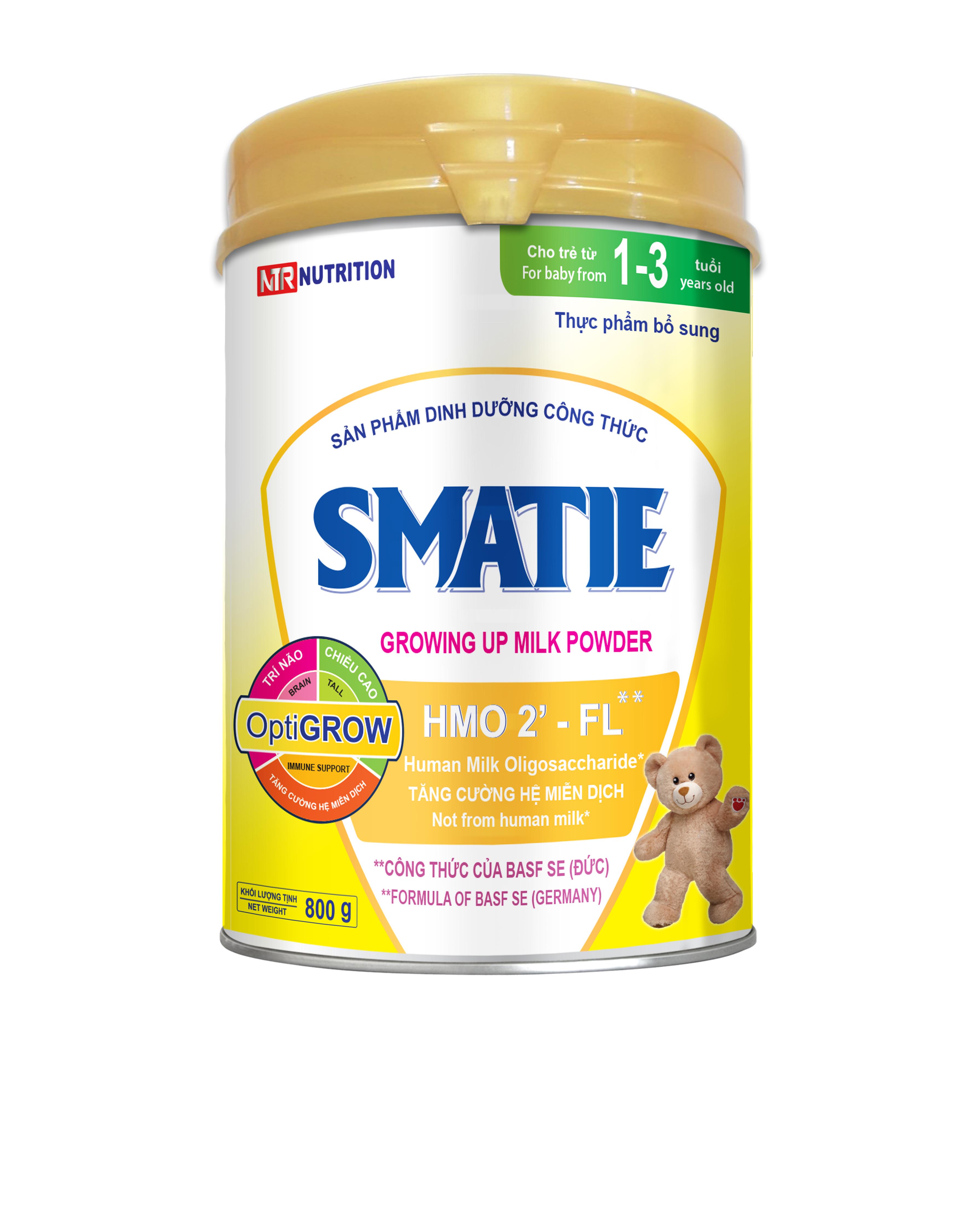SẢN PHẨM DINH DƯỠNG CÔNG THỨC SMATIE CHO TRẺ TỪ 6-24 THÁNG TUỔI   Công thức HMO 2′-FL   TĂNG CƯỜNG HỆ MIỄN DỊCH   GIÚP BÉ PHÒNG CHỐNG CÁC BỆNH VỀ ĐƯỜNG TIÊU HOÁ VÀ HÔ HẤP   Tăng cường sức đề kháng, phòng ngừa các bệnh do vi khuẩn hay virus gây ra, và hấp thu tốt các dưỡng chất cho bé phát triển trí não, chiều cao tối đa    CÔNG THỨC CỦA BASF SE (ĐỨC)    Thông tin khác vui lòng xem trên nhãn bao bì của sản phẩm   Chú ý: Sữa mẹ là thức ăn tốt nhất cho sức khoẻ và sự phát triển toàn diện của trẻ nhỏ. Các yếu tố chống nhiễm khuẩn đặc biệt là kháng thể chỉ có trong sữa mẹ có tác dụng giúp trẻ phòng, chống bệnh tiêu chảy, nhiễm khuẩn đường hô hấp và một số bệnh nhiễm khuẩn khác.   Mùi vị thơm ngon gần giống với vị sữa mẹ, không quá ngọt, vị ngọt tự nhiên của sữa.  Sản phẩm không chứa các chất kích thích làm nhanh tăng trưởng ở trẻ.  Sản phẩm đạt chứng nhận của Sở Y Tế, dinh dưỡng đầy đủ cân đối cho sự phát triển toàn diện cách tự nhiên. Đặc biệt bổ sung hàm lượng HMO 2'-FL, thành phần miễn dịch tự nhiên có trong sữa mẹ. Đôi nét về thương hiệu SMATIE SMATIE có mặt tại thị trường Việt Nam với các sản phẩm Sữa công thức, Thực phẩm bổ sung dinh dưỡng, khăn ướt trẻ em, khăn ướt kháng khuẩn dùng cho cả da tay và mặt, và tã (bỉm) quần. SMATIE chủ yếu xuất khẩu cho các thị trường Châu Á, và Đông Âu, … SMATIE chính thức được phân phối tại Việt Nam từ năm 2017.