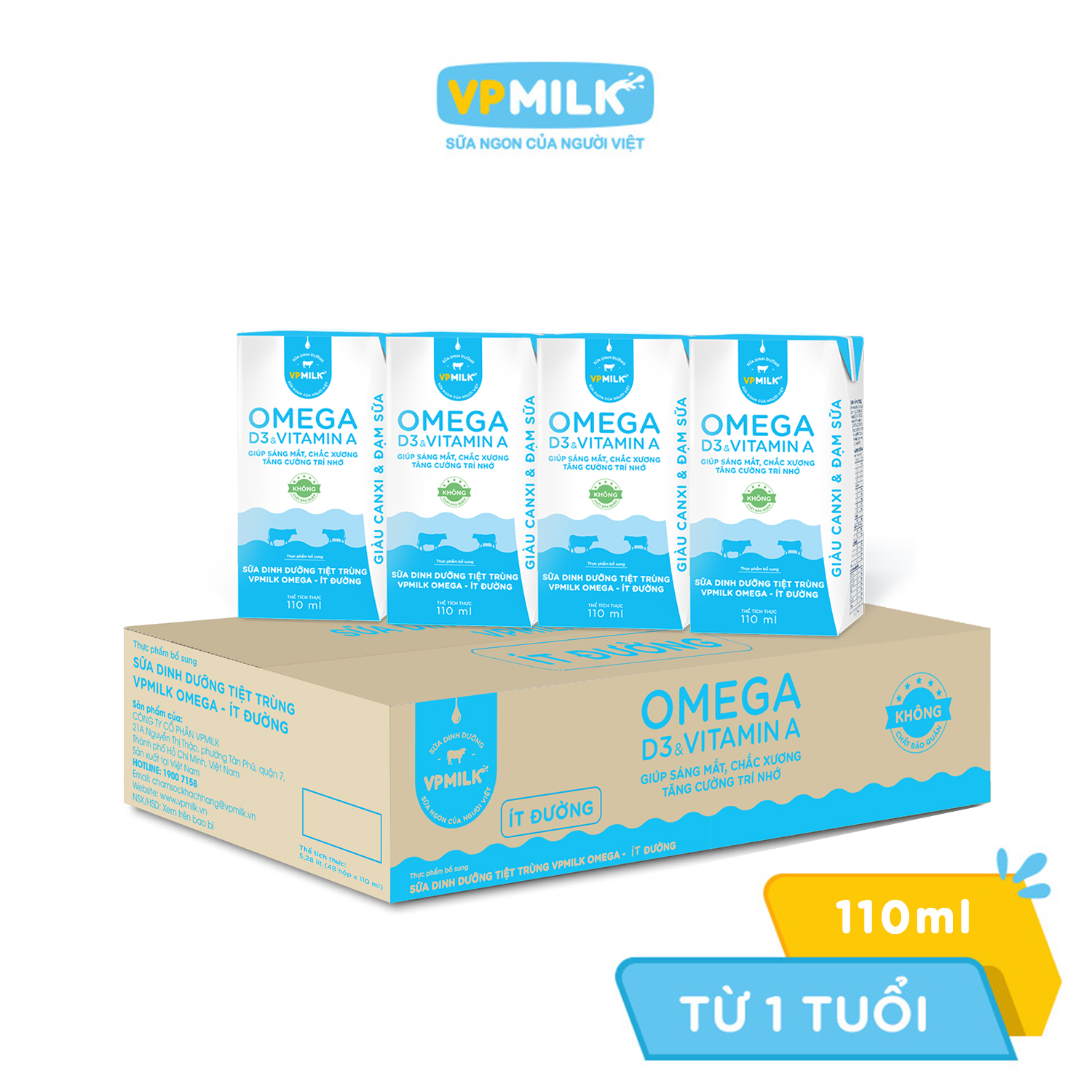 ✨Sữa Dinh Dưỡng Tiệt Trùng VPMilk Omega Ít Đường dạng hộp cho bé trên 1 tuổi 110ml (thùng 48 hộp)