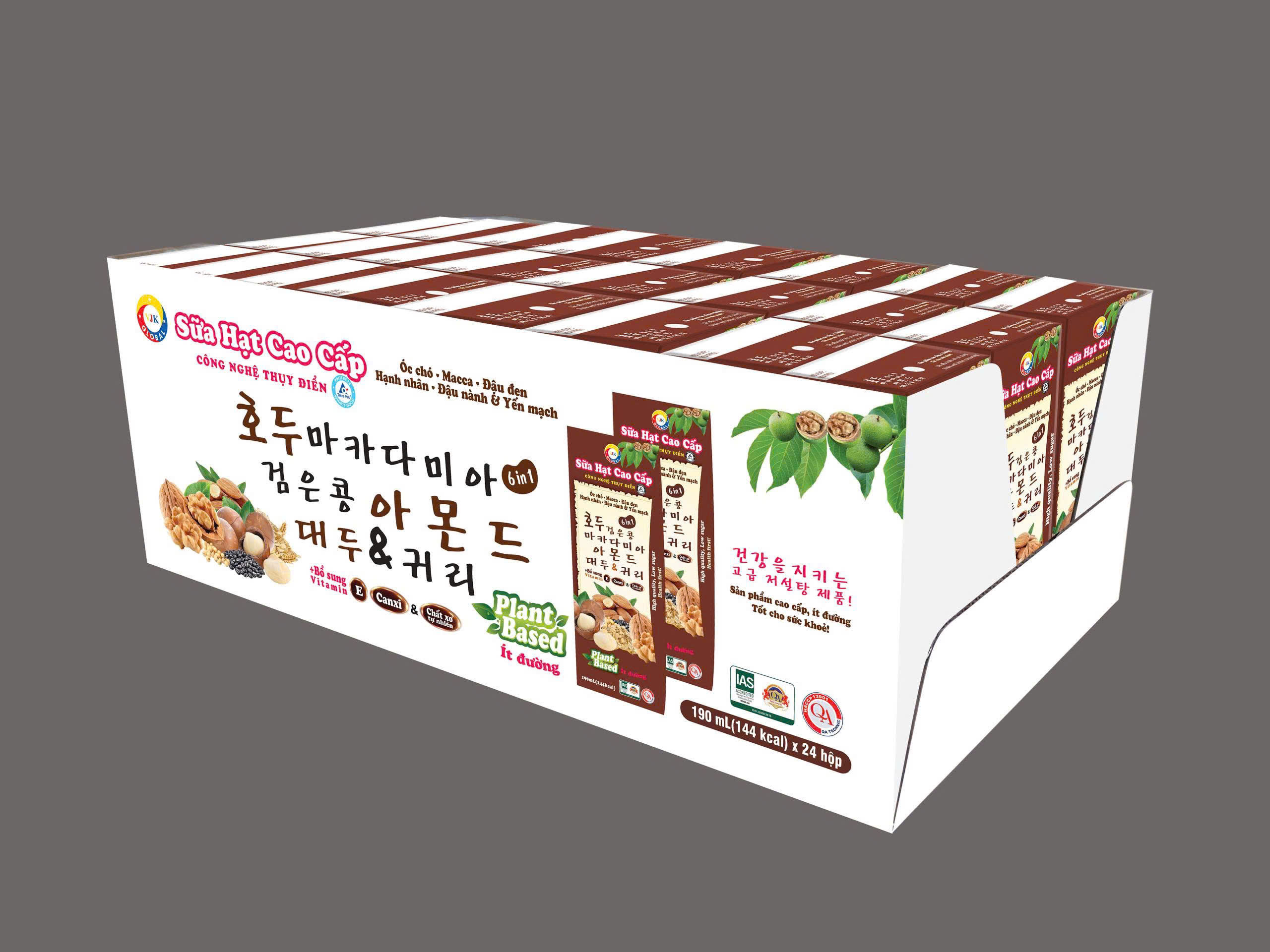 ✨Sữa hạt cao cấp Óc chó-Macca-Đậu đen-Hạnh nhân-Đậu nành & Yến mạch 190ml (24 hộp/thùng)