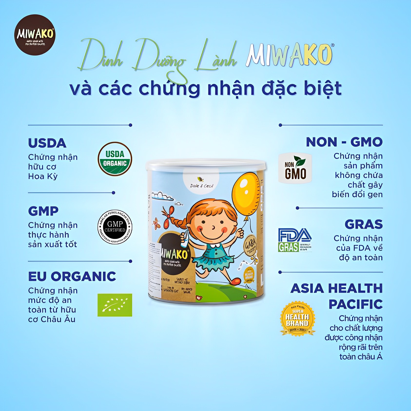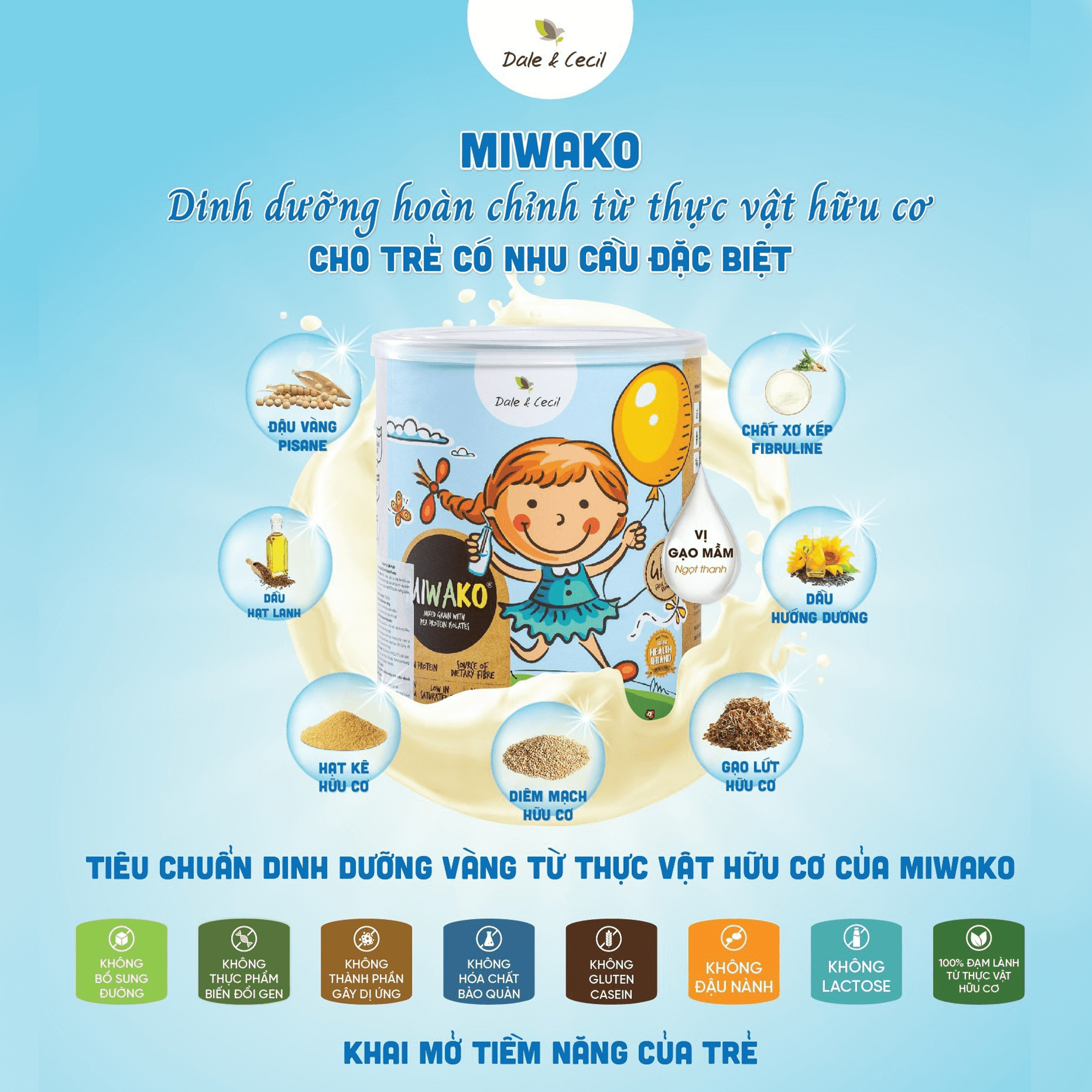 - Miwako là dòng sữa hạt hữu cơ dành cho các bé phát triển trí não & chiều cao THÔNG TIN SẢN PHẨM SỮA HẠT HỮU CƠ MIWAKO VỊ GẠO: