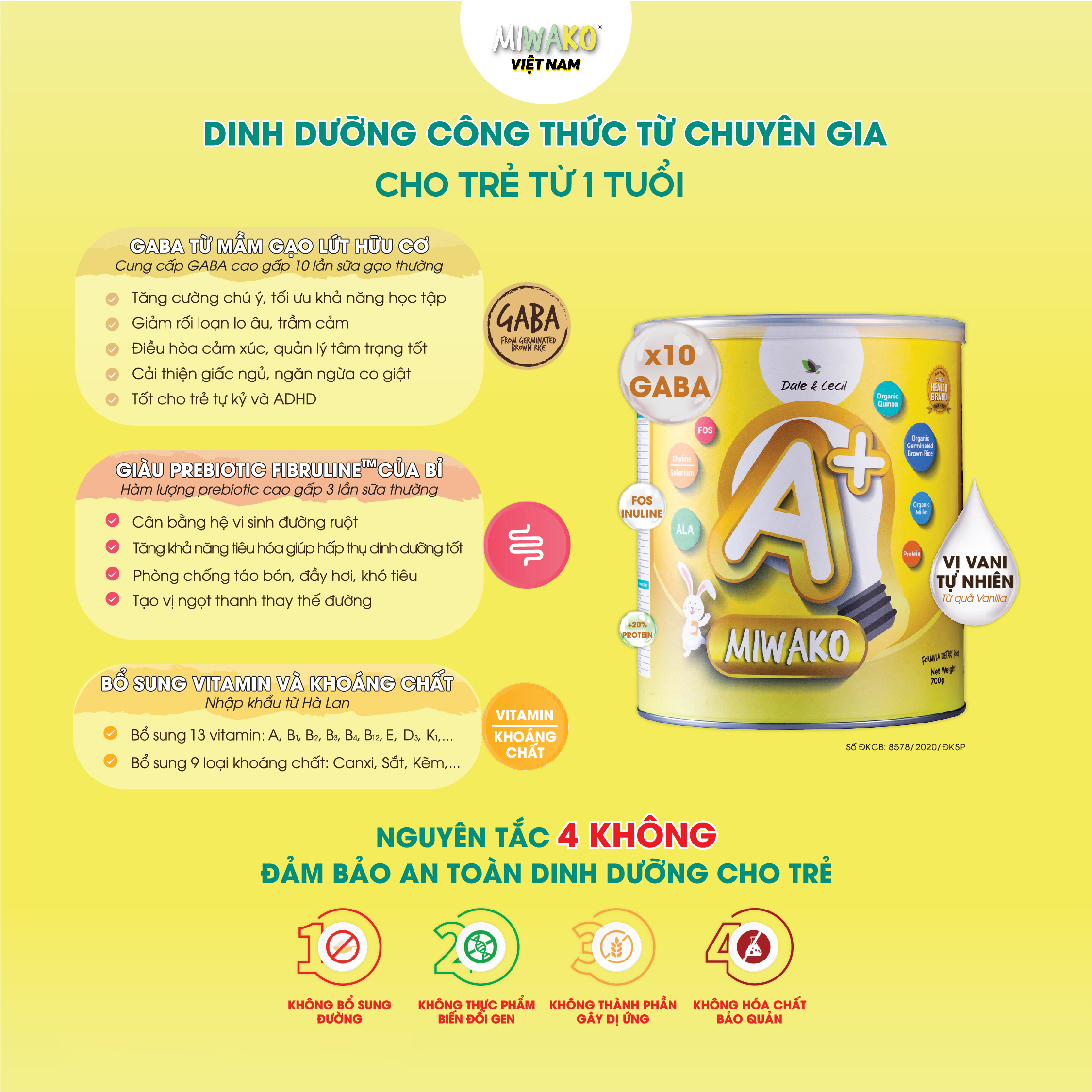 Sữa Miwako A+ Sữa Hạt Cho Bé Tăng Chiều Cao Ngủ Ngon Phát Triển Thông Minh, Sữa Không Đường 700g Vị Vani x3 Hộp - miwako 🍀 THÔNG TIN SẢN PHẨM SỮA MIWAKO: