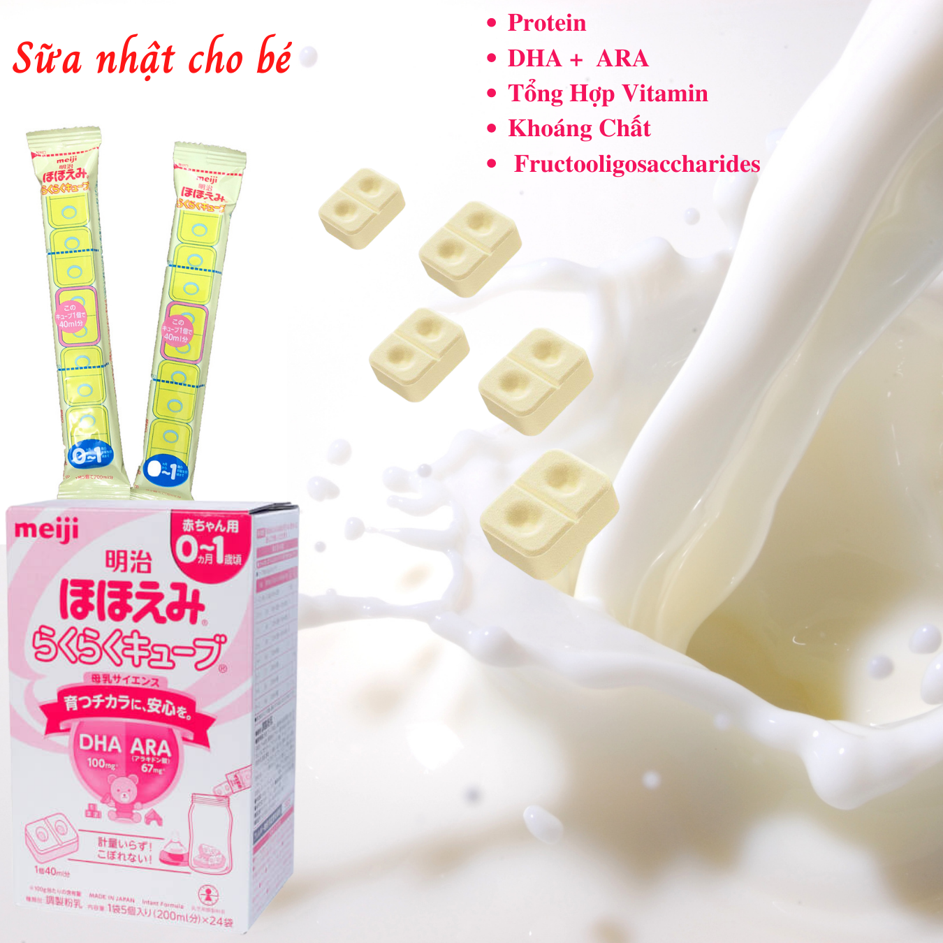 Sữa Nhật Cho Bé Tăng Cân Từ 0 Đến 1 Tuổi Meiji Hỗ Trợ Tăng Hệ Miễn Dịch, Tạo Hệ Tiêu Hóa Tốt Hấp Thụ Dưỡng Chất Hiệu Quả Giúp Bé Phát Triển Cân Đối Nhất Cả Về Chiều Cao, Cân Nặng, Trí Não - 1 Hộp (24 Thanh x 5 Viên)