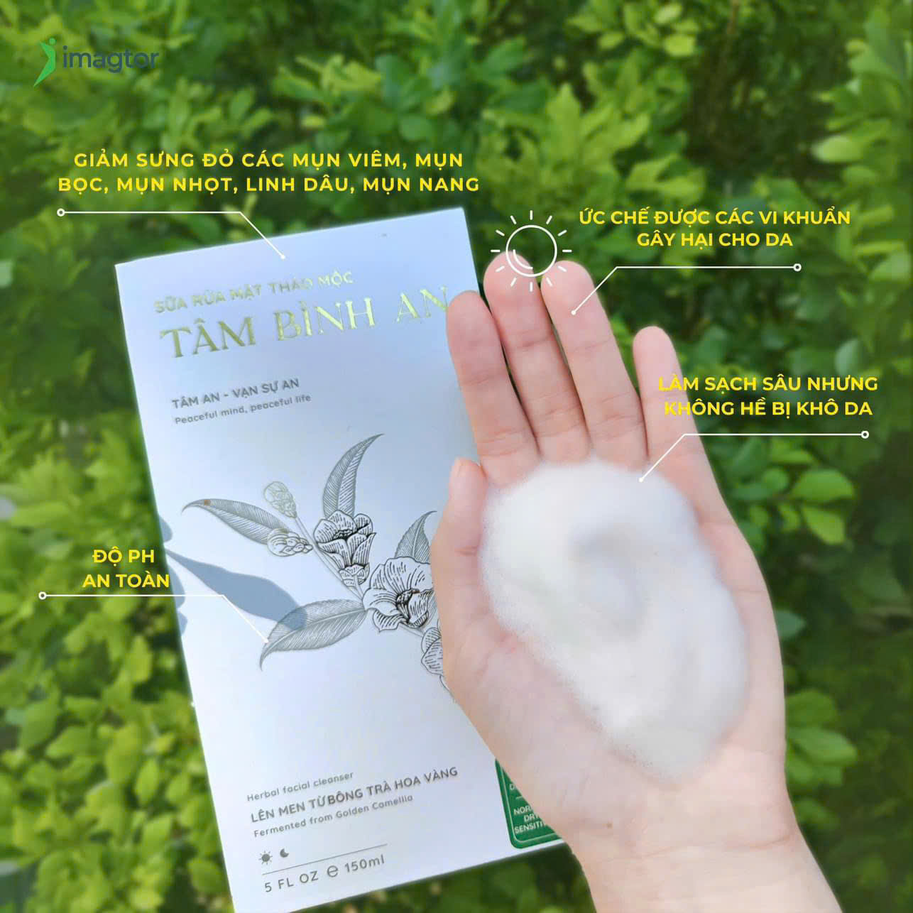 Mô tả: Sữa rửa mặt thảo mộc Tâm Bình An gồm các thành phần chủ yếu từ thiên nhiên, chiết xuất từ Trà Hoa Vàng mang tới các công dụng như làm sạch sâu, làm